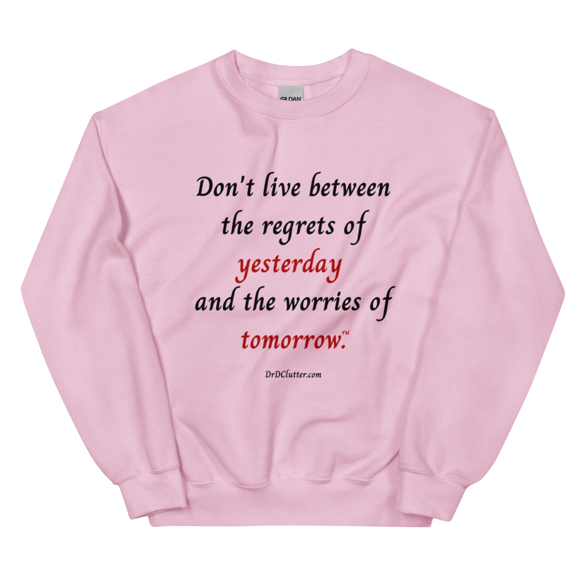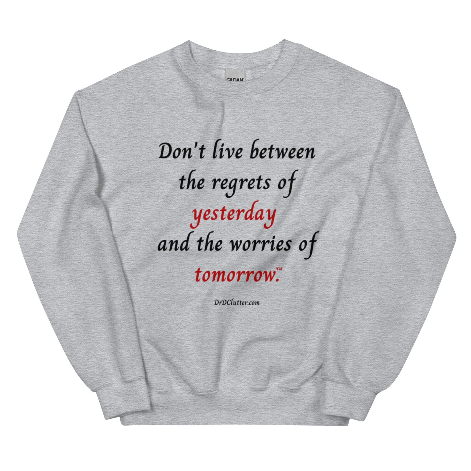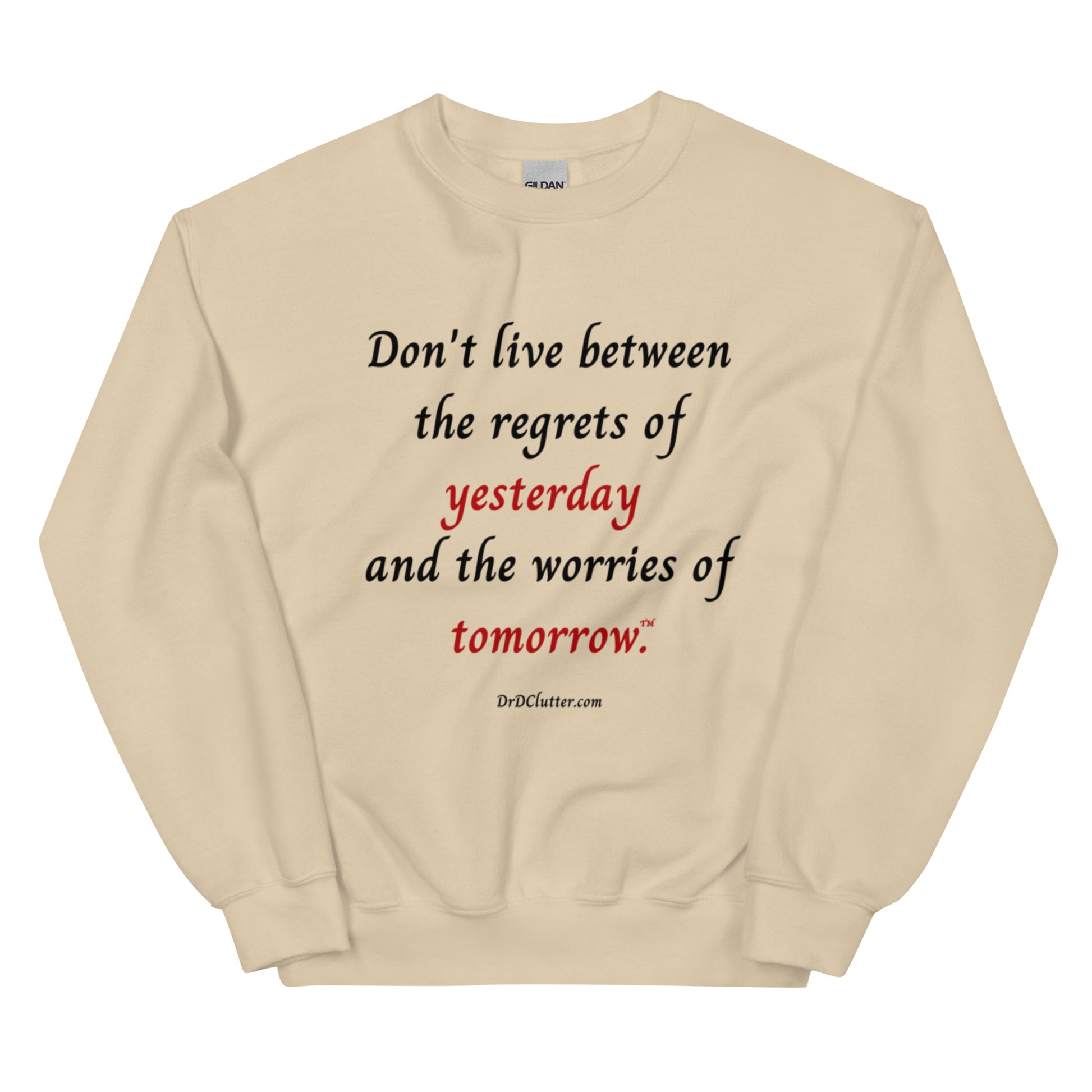 Our Crewneck Sweatshirt encourages you to escape the cycle of regrets and worries with our "Don't live between the regrets of yesterday and the worries of tomorrow.™.”