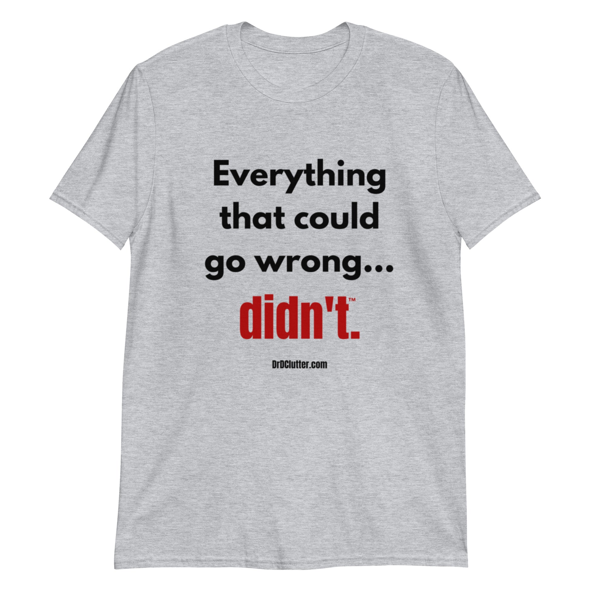 Our Classic T-Shirt bears the impactful statement, "Everything that could go wrong...didn't™." This message serves as a powerful reminder of the abundant grace, favor, and mercy present in your everyday life. It cultivates a mindset of deliberately seeking out positive outcomes rather than fixating on the negative ones. You are the person who expresses gratitude for the things that went well, rather than dwelling on those that didn’t.