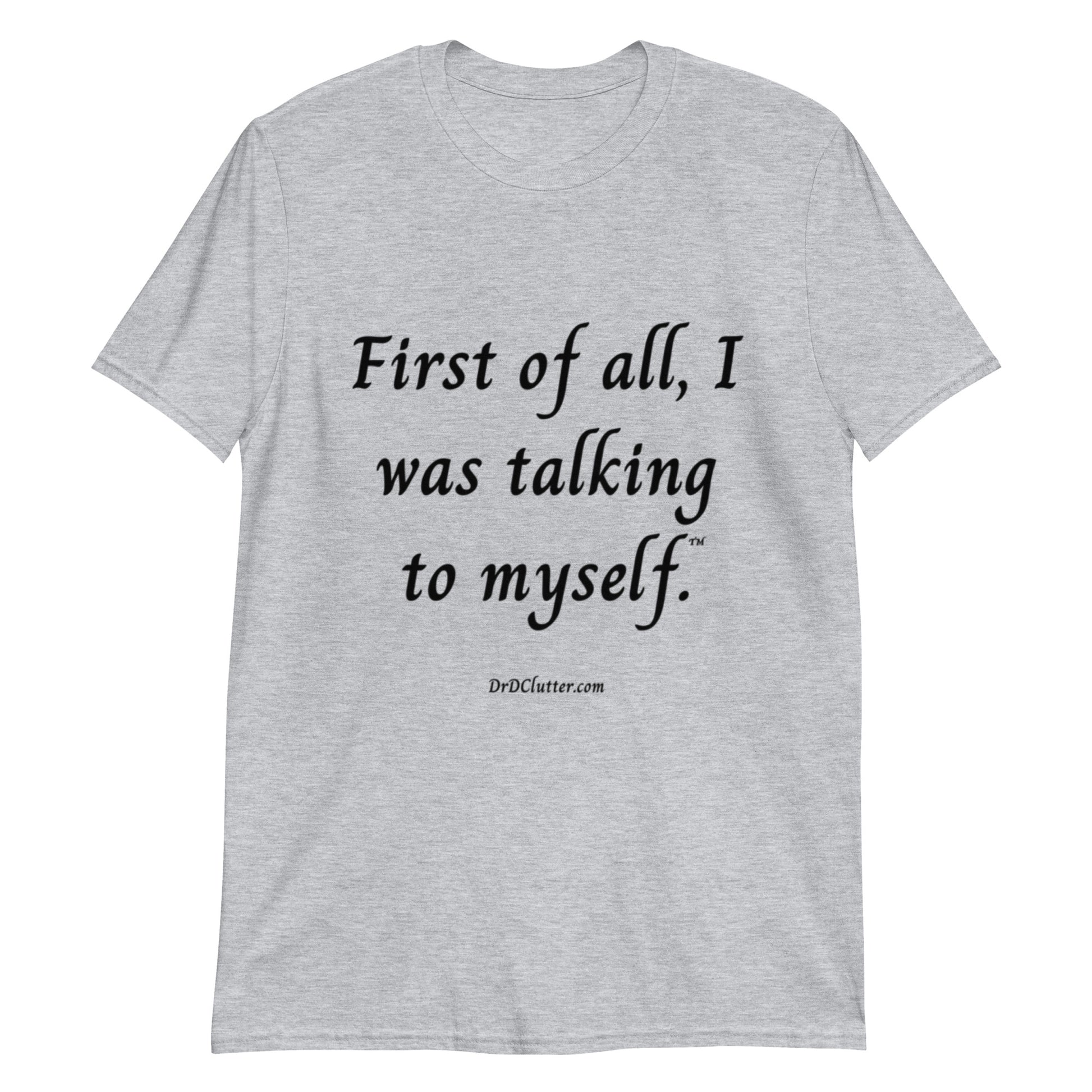 Our Classic T-Shirt is the perfect way to start your day. Featuring the hilarious saying, "First of all, I was talking to myself™.”, it is sure to bring a smile to your face.