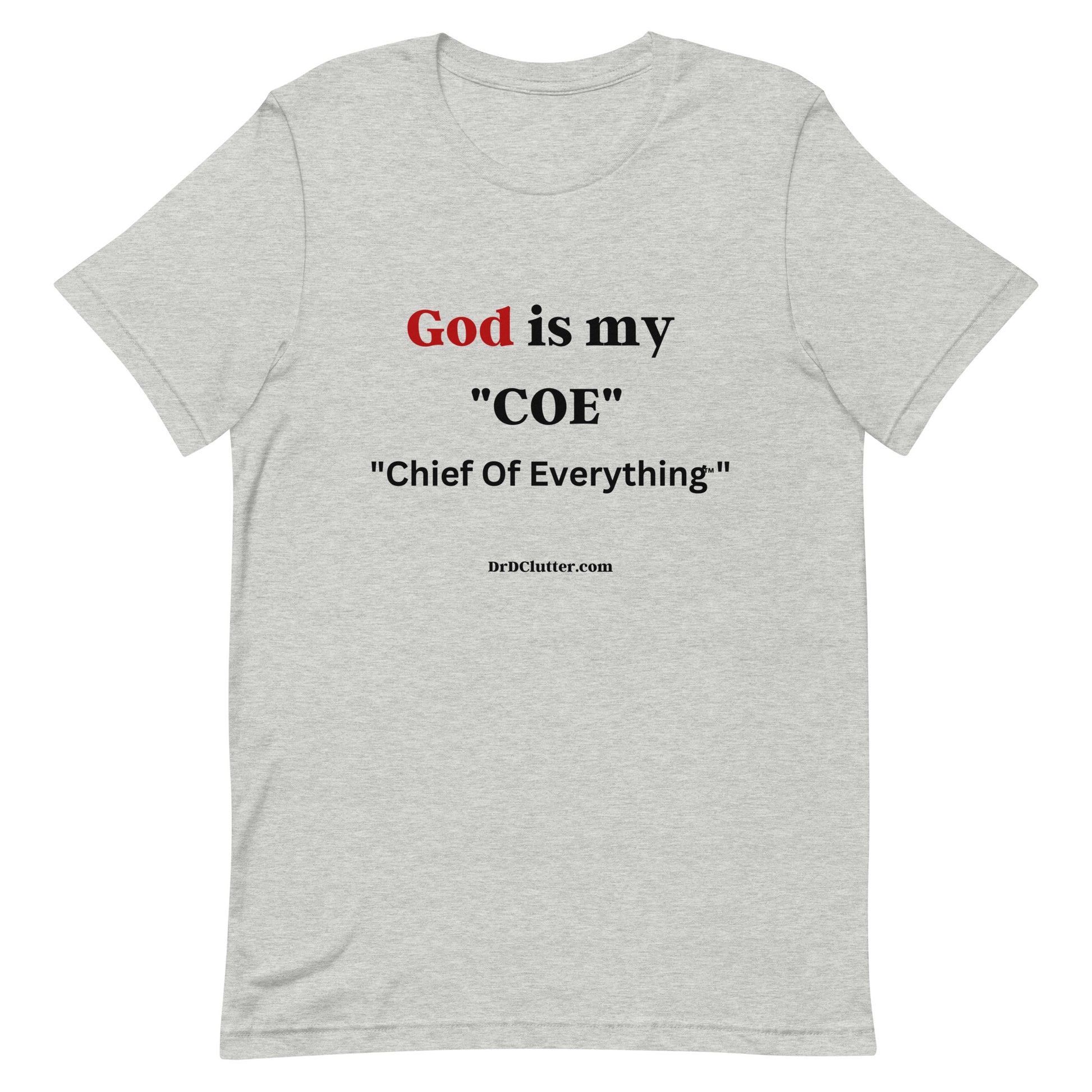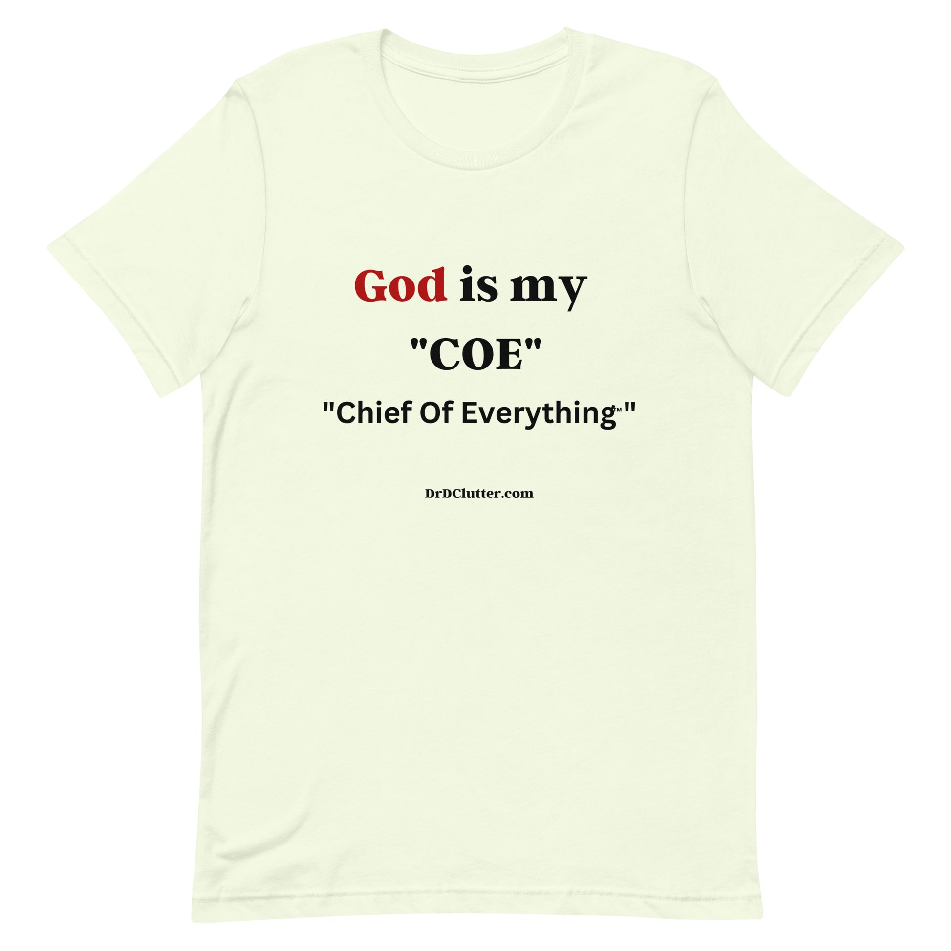 Our Premium T-Shirt helps you make this bold statement, “God is my "COE" "Chief Of Everything™. This powerful message emphasizes both your trust in God to guide your life and help you manage your business with integrity.