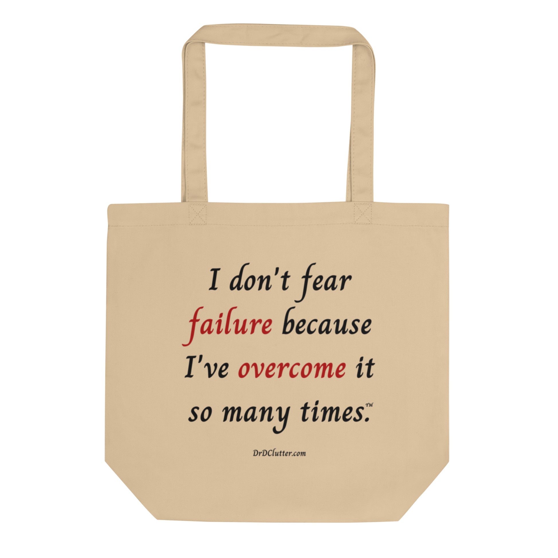 Our Eco Tote encourages you to rethink failures with the empowering message, "I don't fear failure because I've overcome it so many times™.” Failure simply means it didn’t work “that” time, and yet you survived to try again.