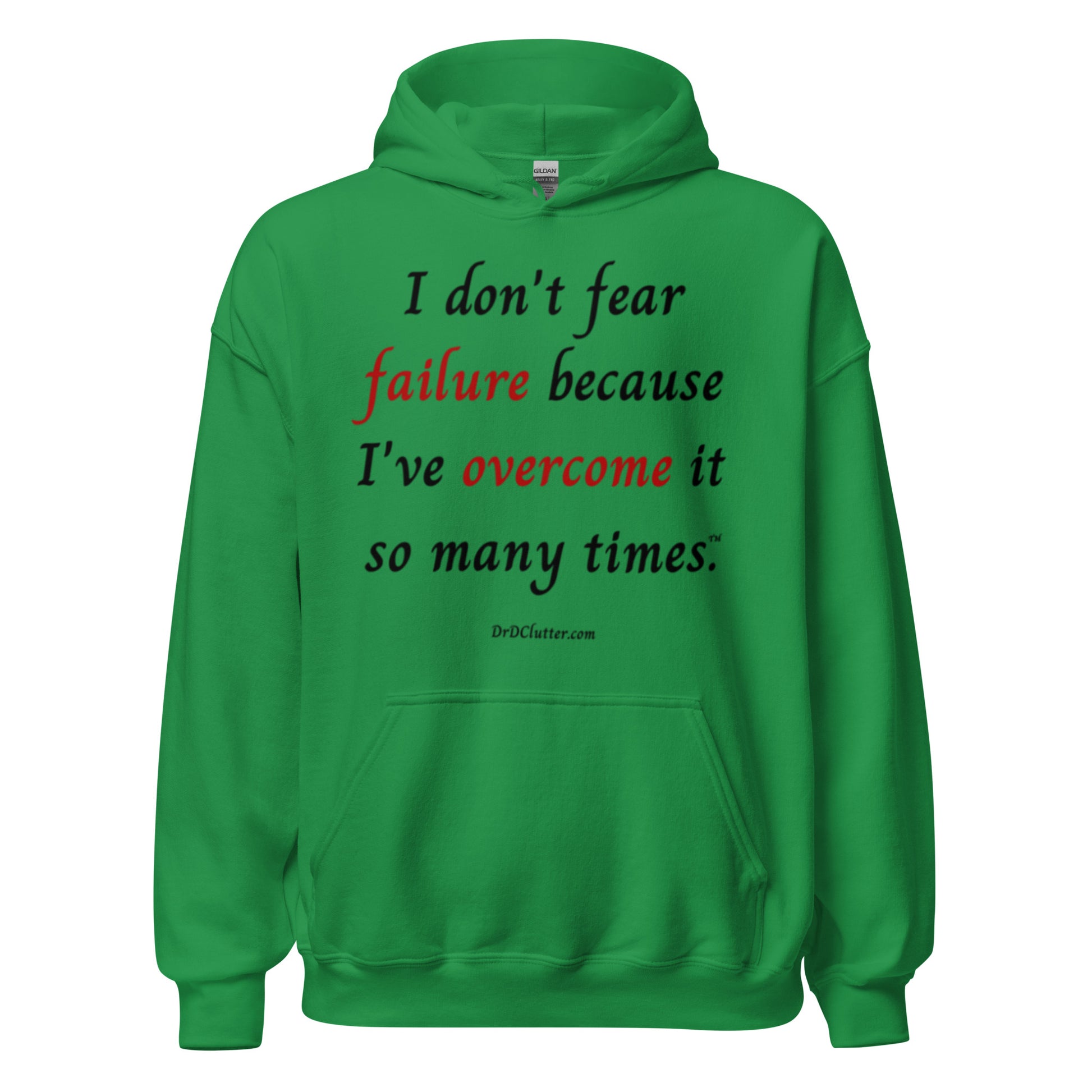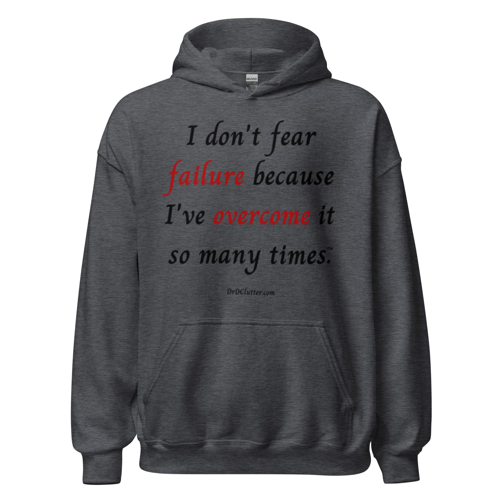 Our Hoodie Sweatshirt encourages you to rethink failures with the empowering message, "I don't fear failure because I've overcome it so many times™.” Failure simply means it didn’t work “that” time, and yet you survived to try again.