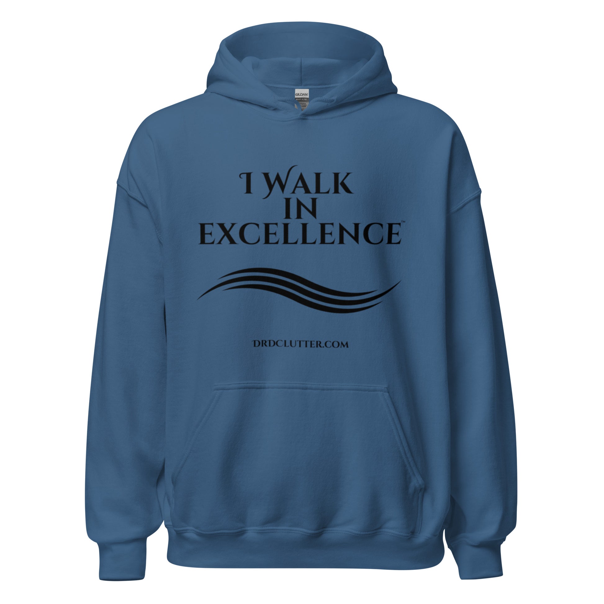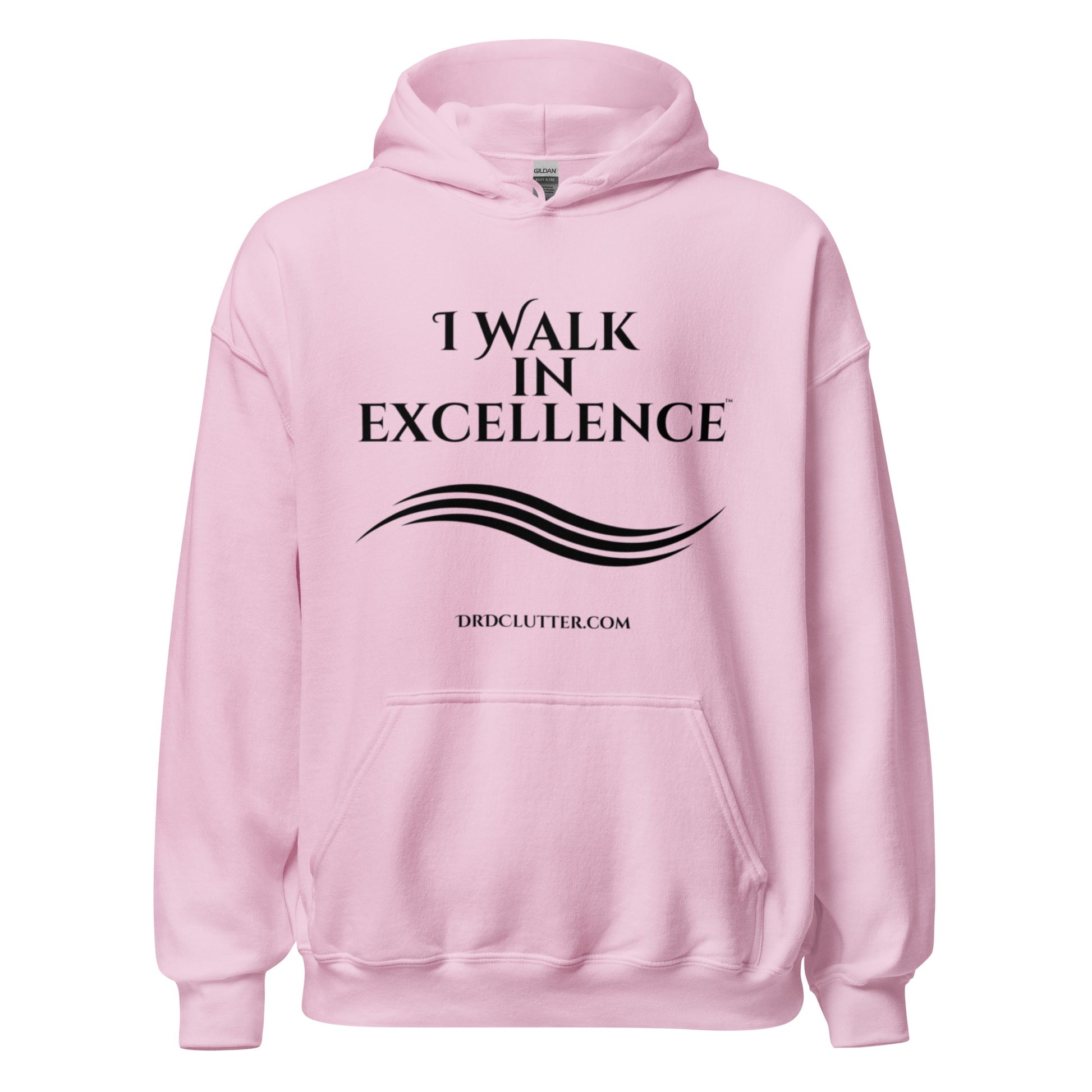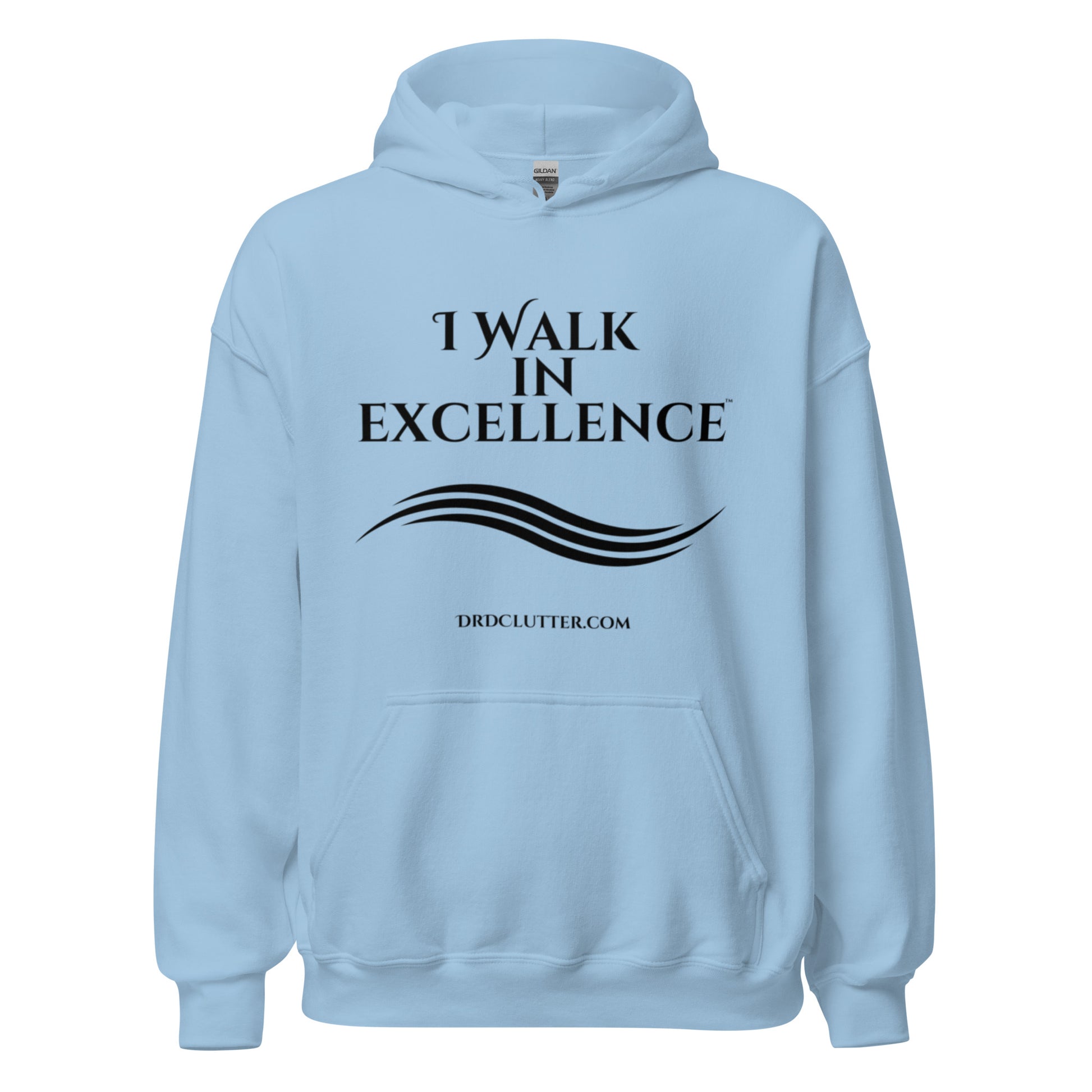 Our Hoodie Sweatshirt featuring the inspiring phrase “I Walk in Excellence™” serves as a daily reminder to approach every step of your life’s journey with excellence.