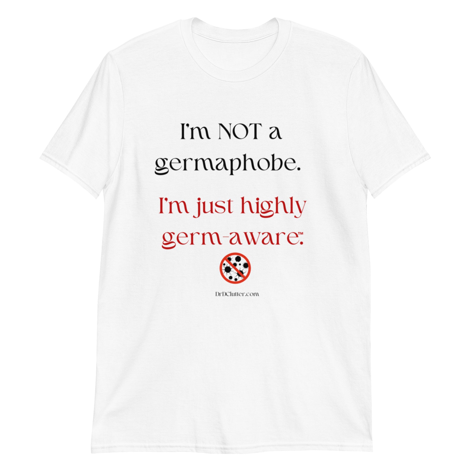 Our Classic T-Shirt featuring the witty phrase, "I'm not a germaphobe. I'm just highly germ-aware™." showcases your unique sense of humor and “hygiene-conscious mindset” too!!