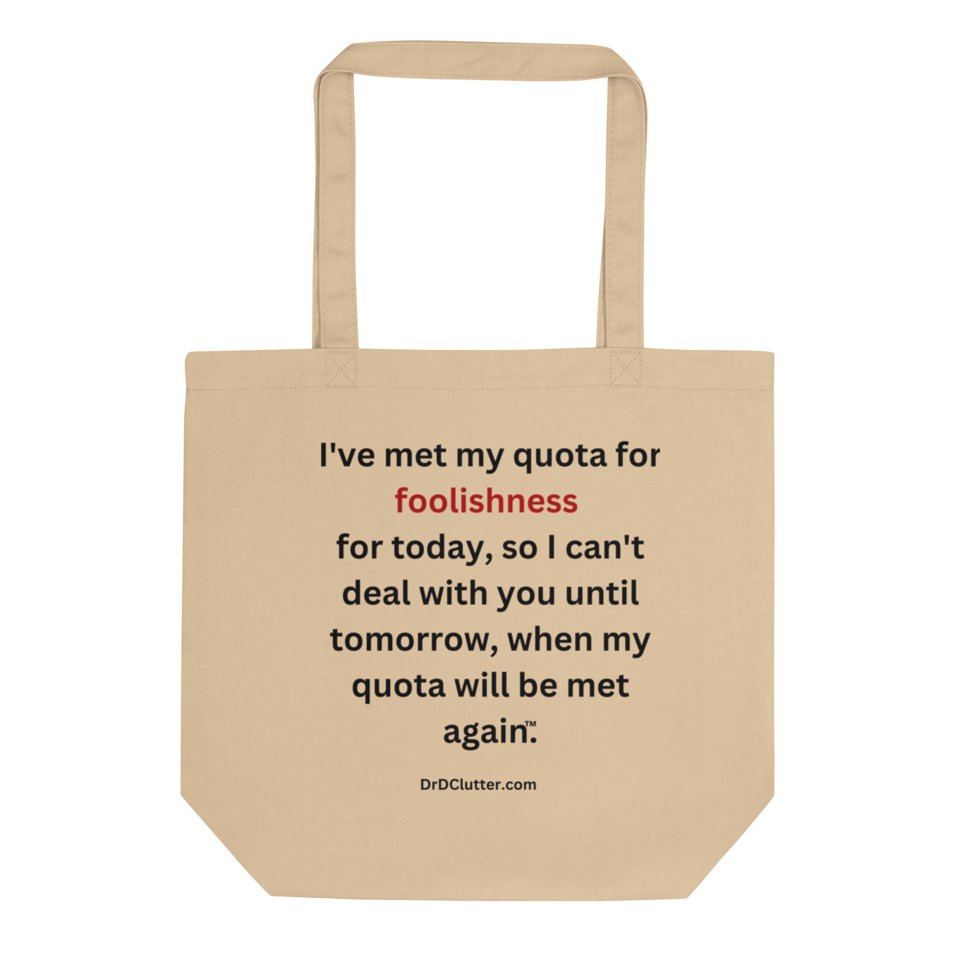 I've met my quota for foolishness for today, so I can't deal with you until tomorrow, when my quota will be met again™.-Eco Tote Bag
