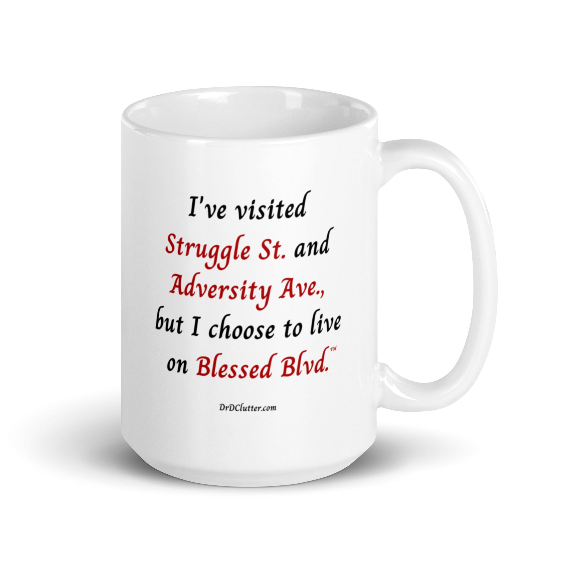 I've visited Struggle St. and Adversity Ave., but I choose to live on Blessed Blvd.™-Mug 11 oz or 15 oz
