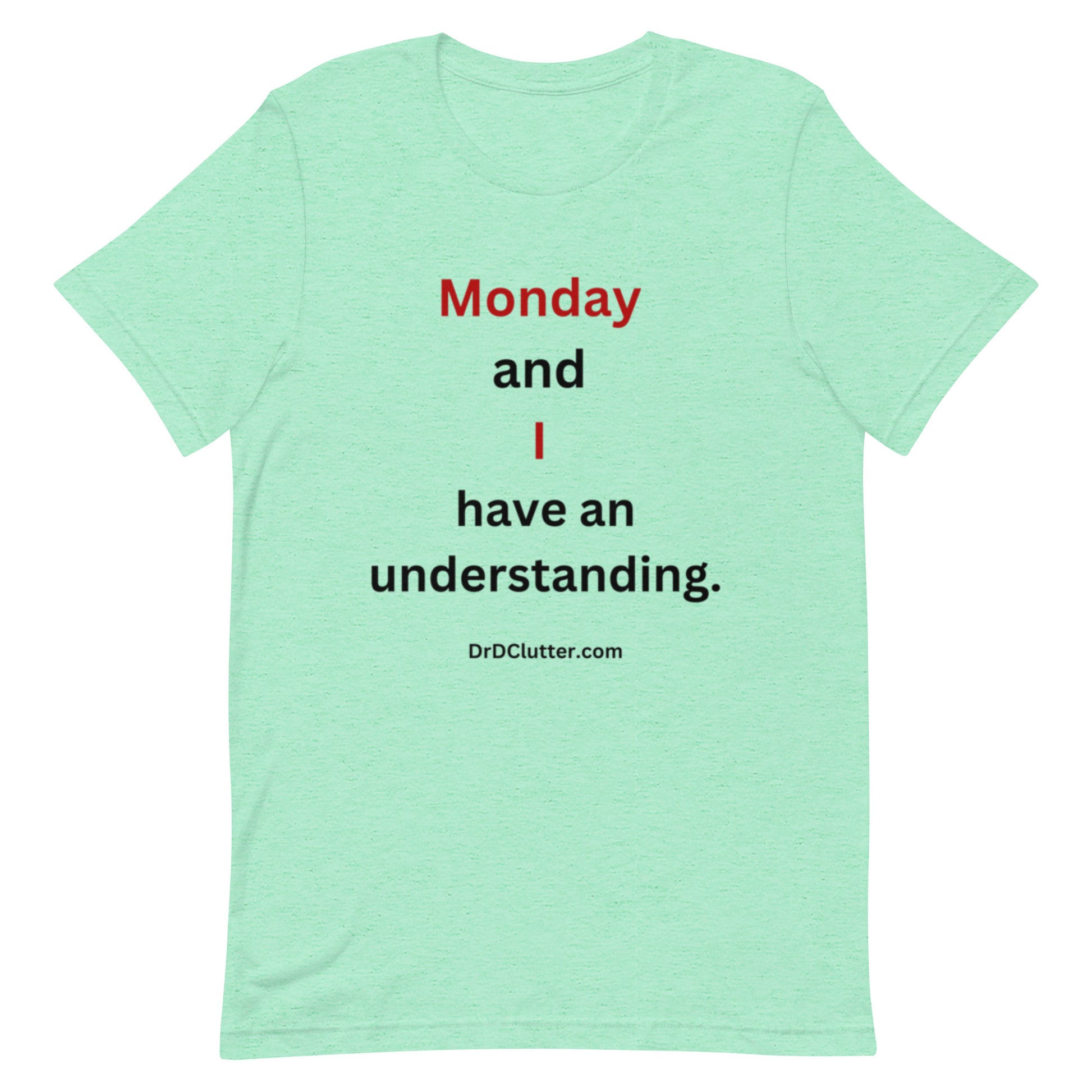Whether you're working from home building your Empire or an in-office professional, a student, or simply someone who appreciates a good laugh, our "Monday and I have an understanding." Premium T-Shirt is a must-have addition to your wardrobe. It also makes a fantastic gift for friends, family, or coworkers who could use a little boost of encouragement and humor to start their week for success. So why wait? Embrace Mondays with a smile and sport your new favorite Premium T-Shirt showing the world that "Monday and I have an understanding." Add a touch of humor and positivity to your day.