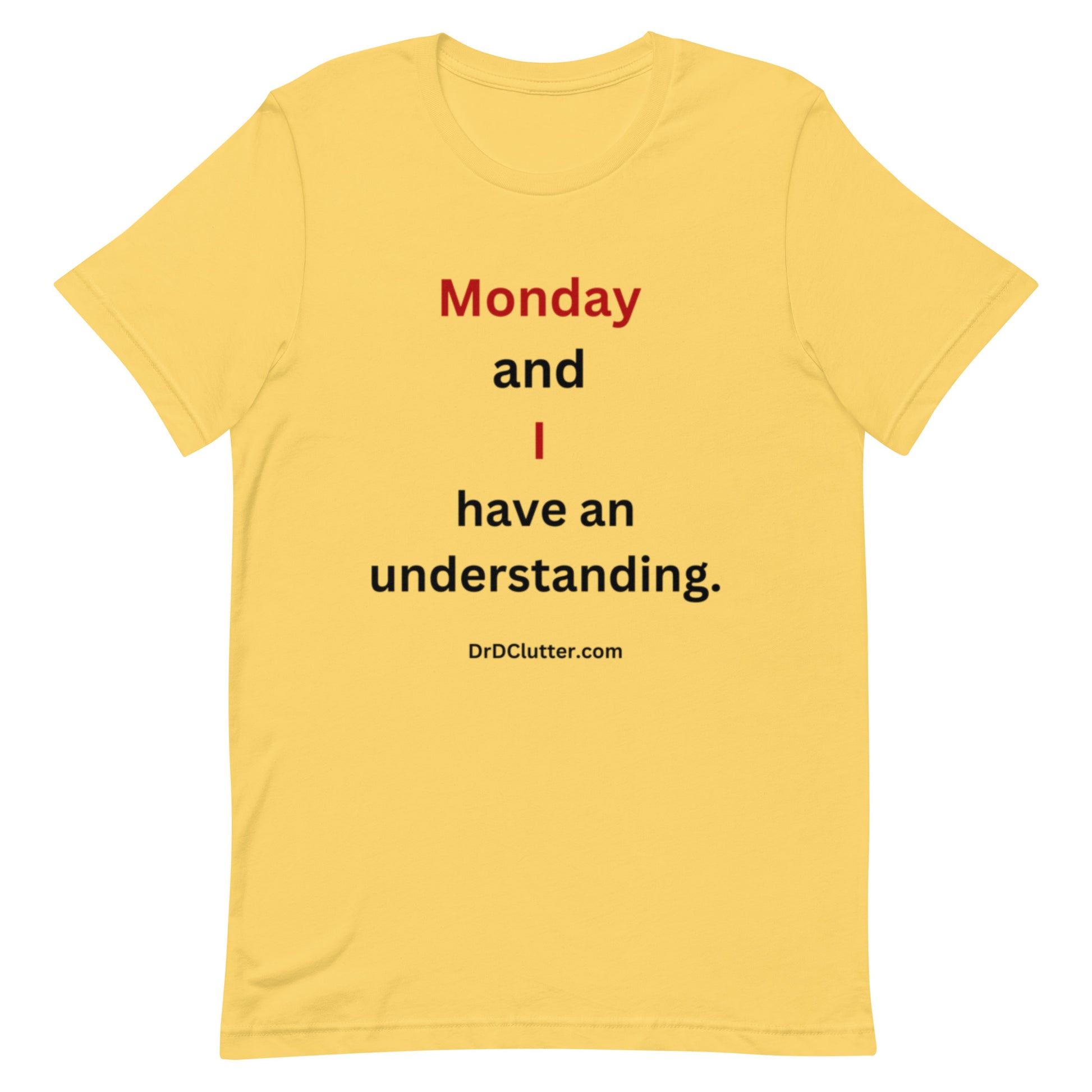 Introducing our "Monday and I have an understanding." Premium T-Shirt-the perfect companion to kick-start your week with a touch of humor and make every day a memorable one. Created with care and designed to help make your mornings more delightful, this Premium T-Shirt is the ultimate blend of style, functionality, and a lighthearted attitude. Our "Monday and I have an understanding." Premium T-Shirt is stylish and is bound to garner a few looks for its style.