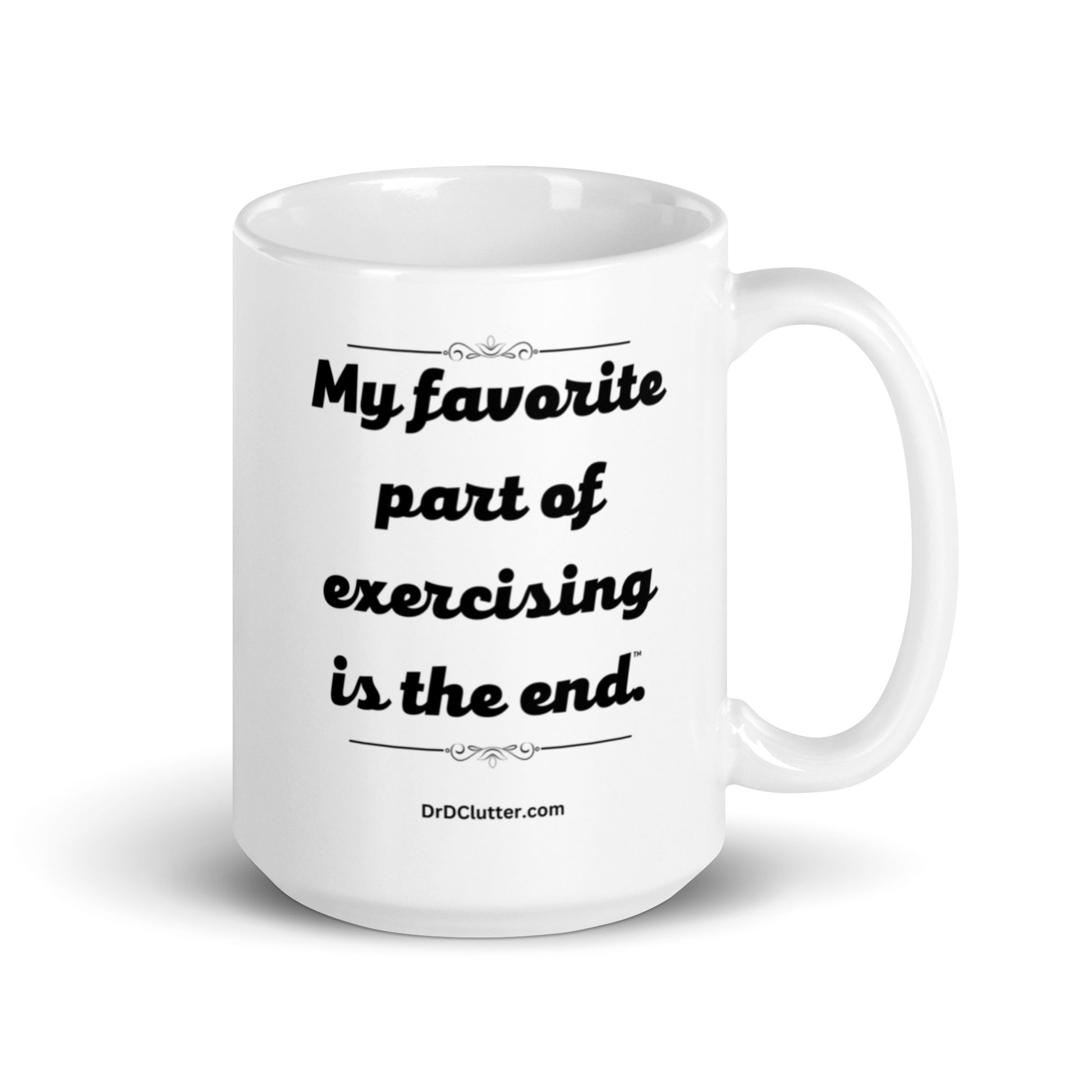Our Mug features the humorous, but true phrase, ""My favorite part of exercising is the end™.” We all have our favorites and this is for you if you are serious about maintaining your health and fitness, but you celebrate when the workout ends!!