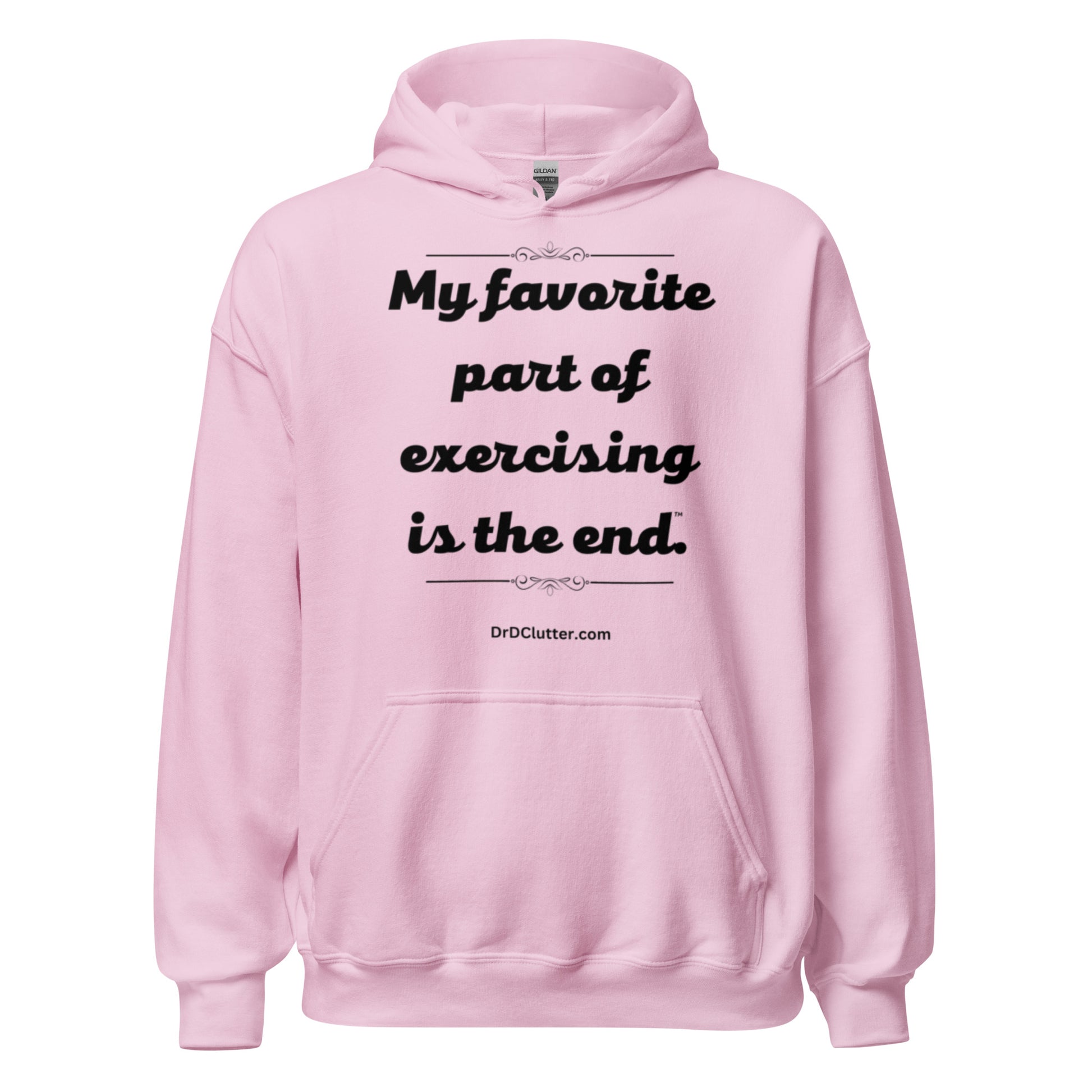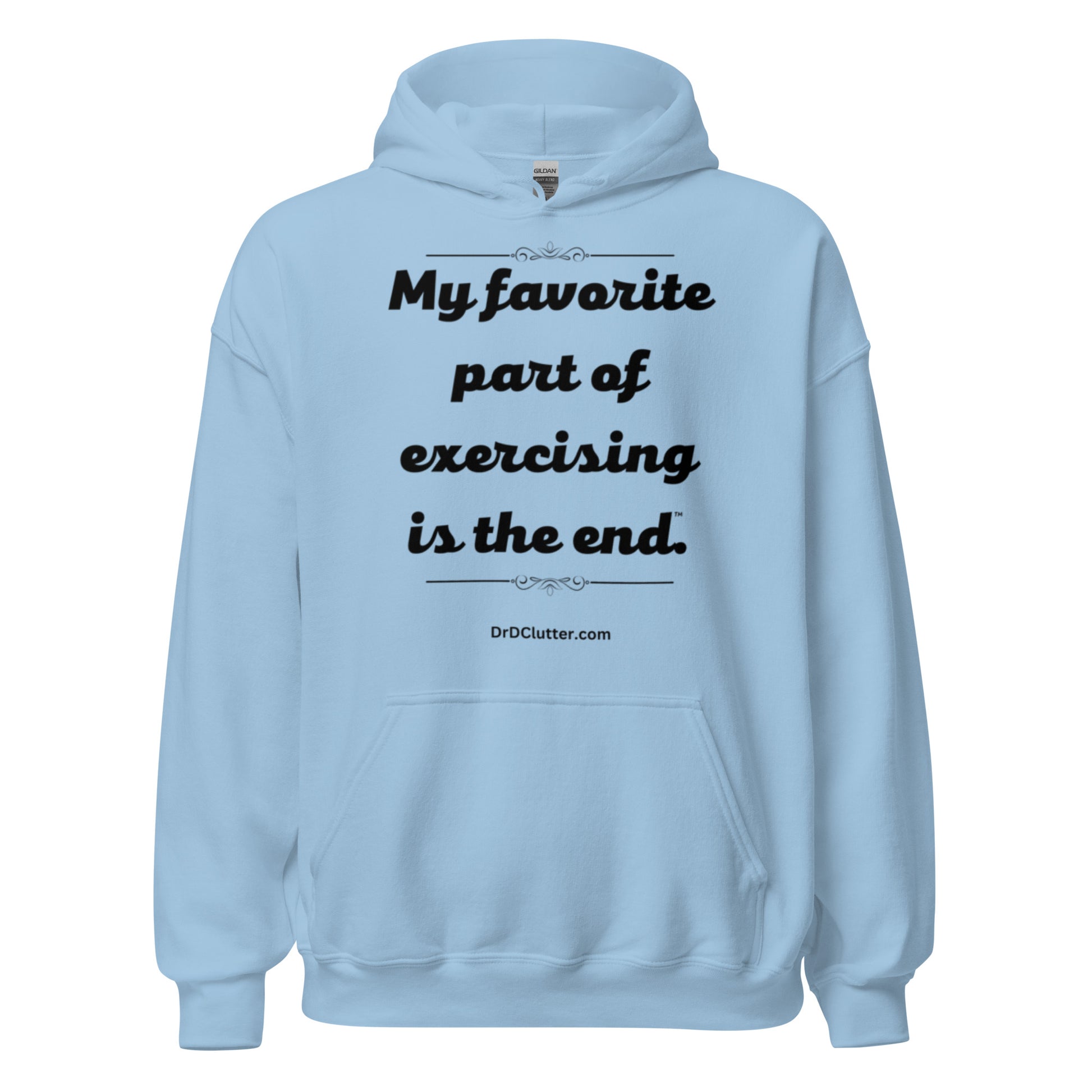 Our Hoodie Sweatshirt features the humorous, but true phrase, "My favorite part of exercising is the end™.” We all have our favorites and this is for you if you are serious about maintaining your health and fitness, but you celebrate when the workout ends!!