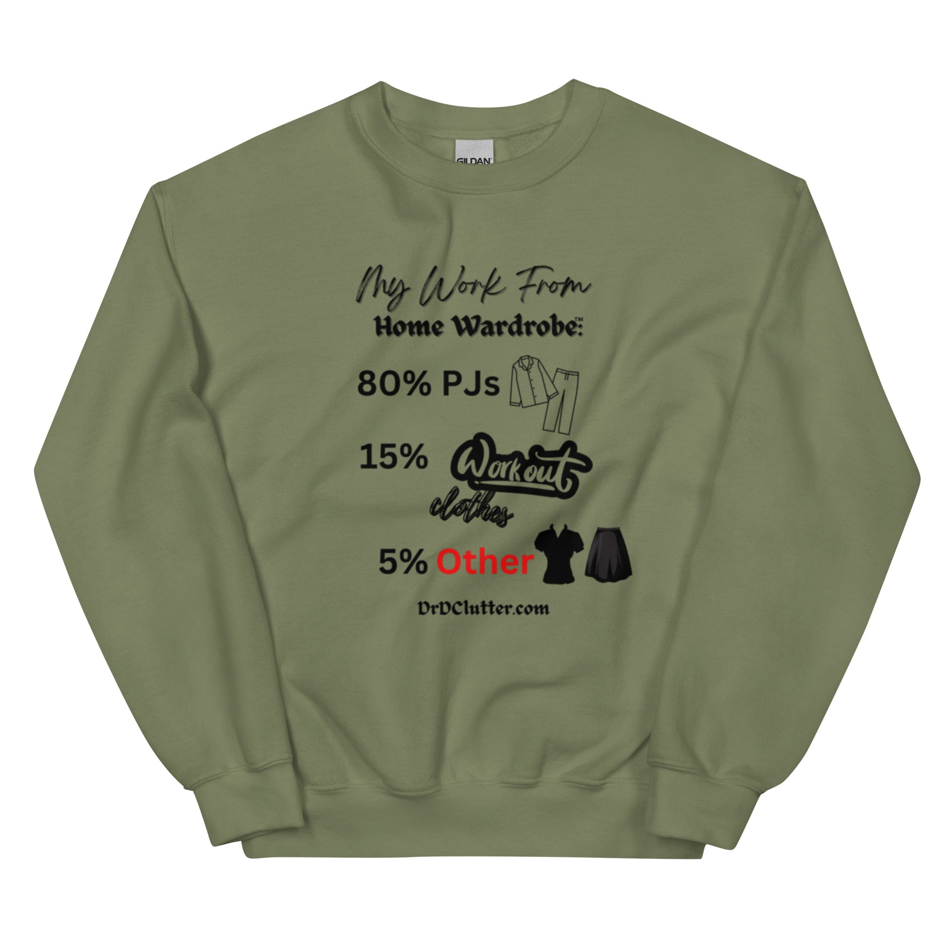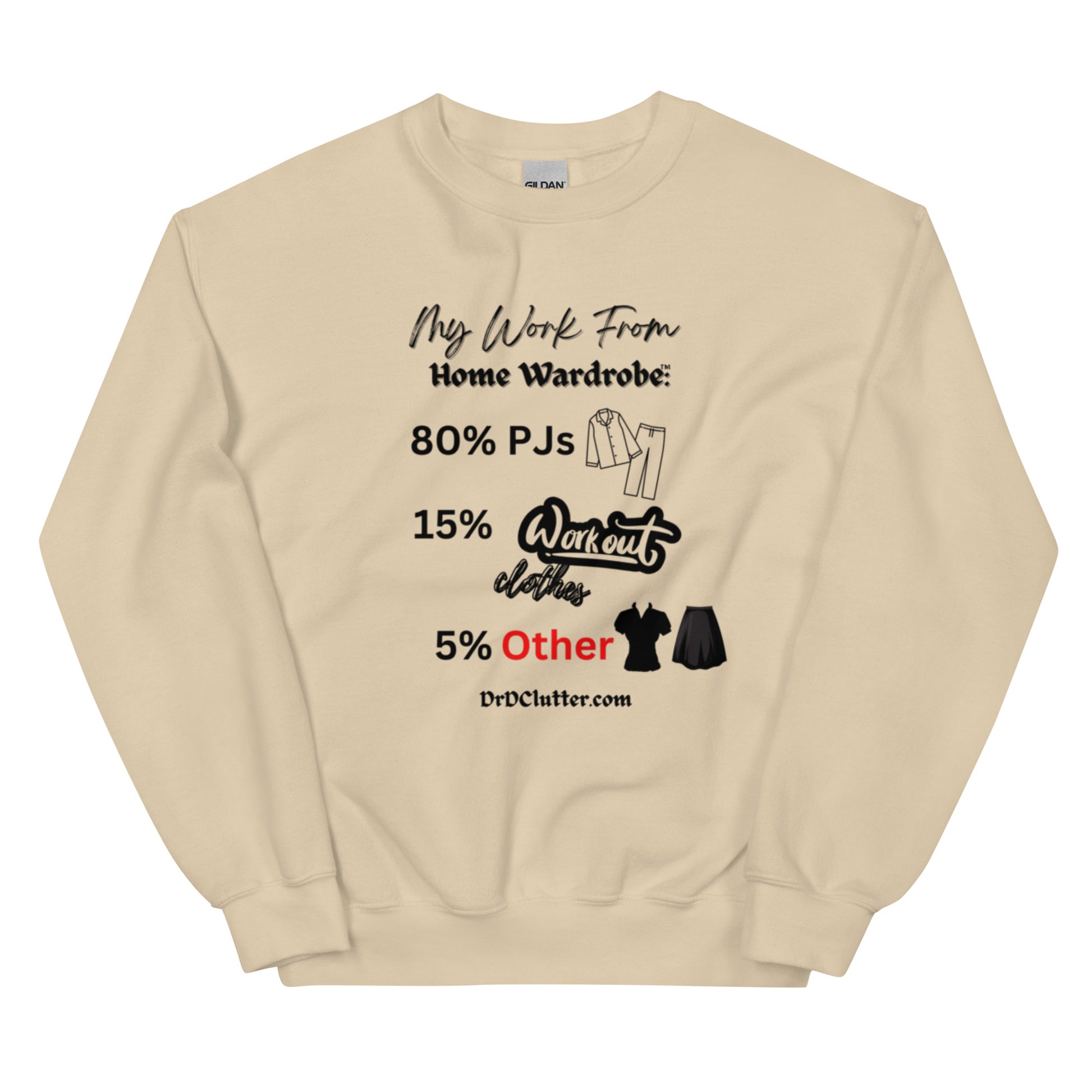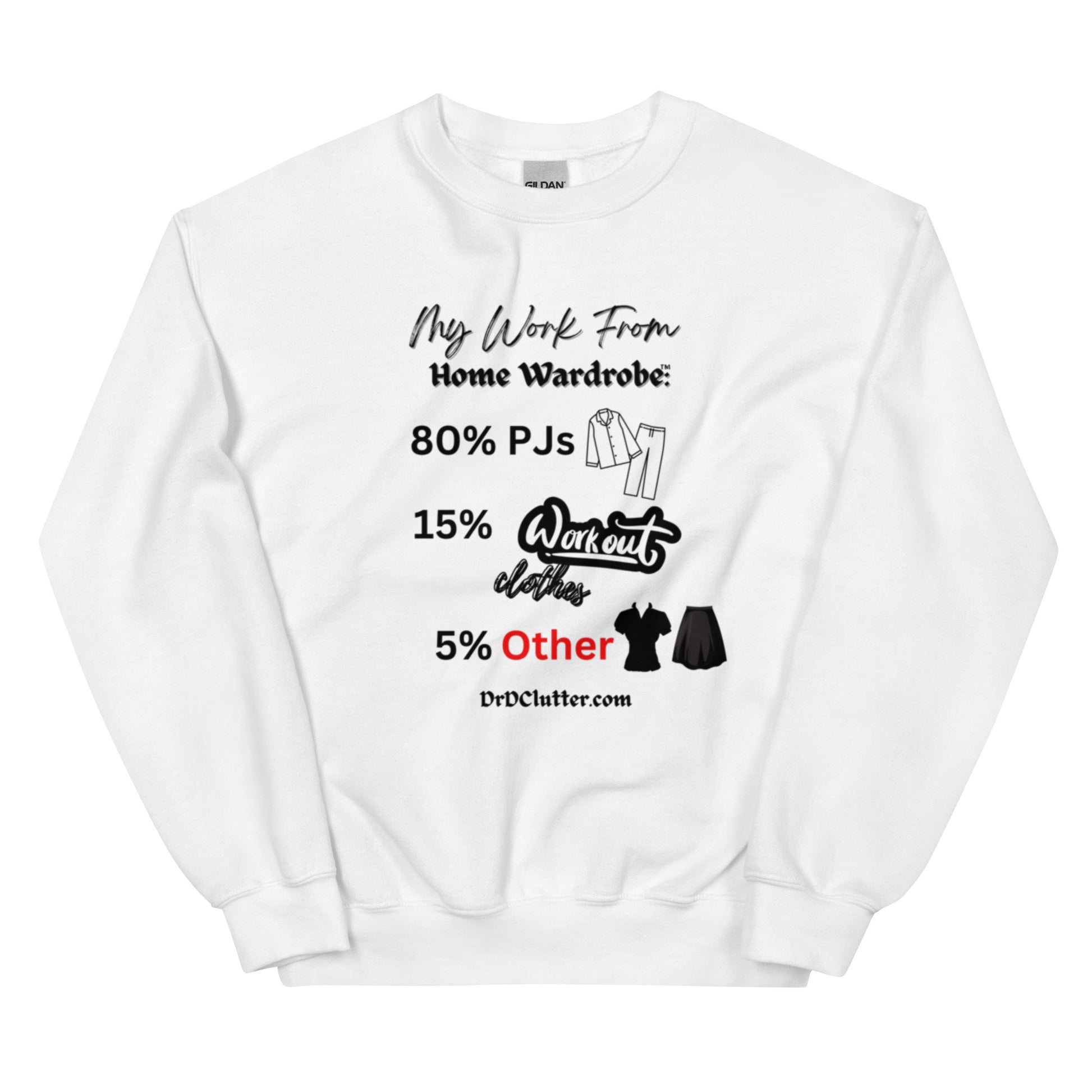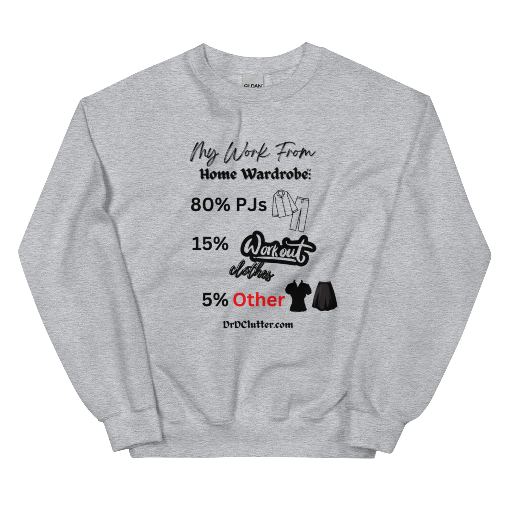 Our Crewneck Sweatshirt featuring the humorous, but true, "My Work From Home Wardrobe™" message, adds a touch of humor and a dose of reality to your workday. It showcases your ability to adapt to the changing world and work environment too.