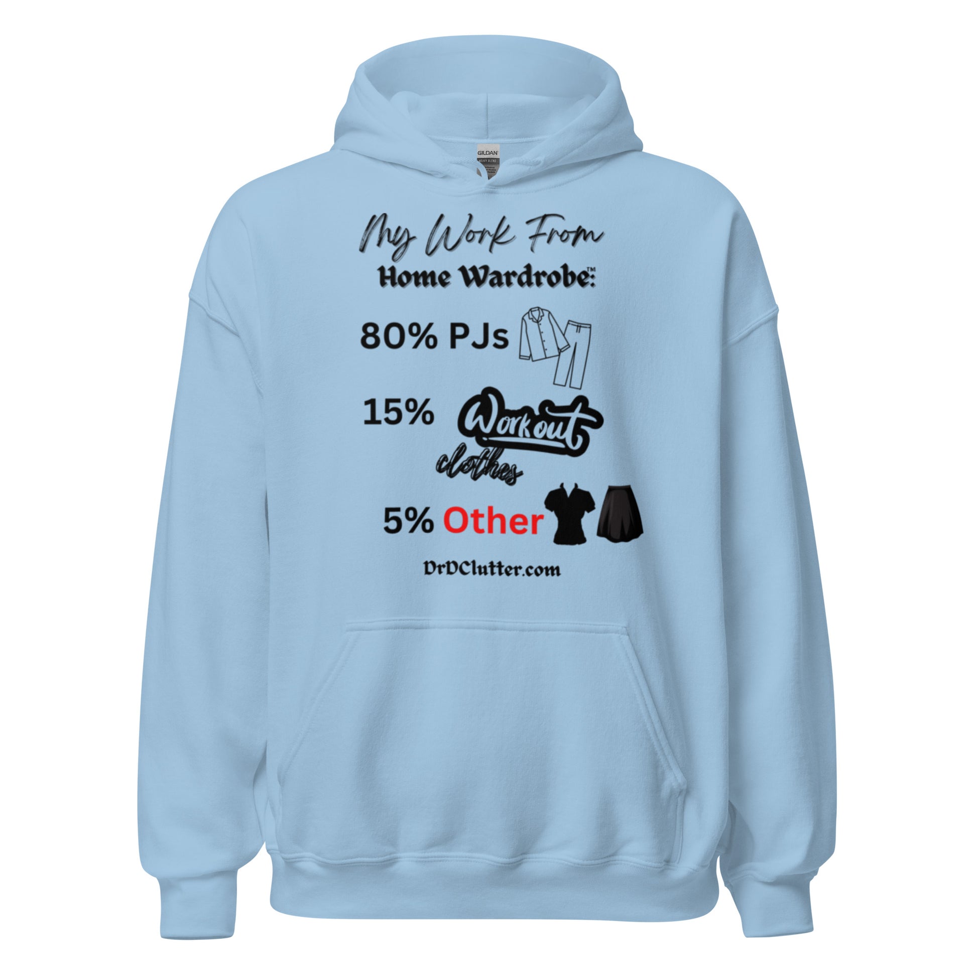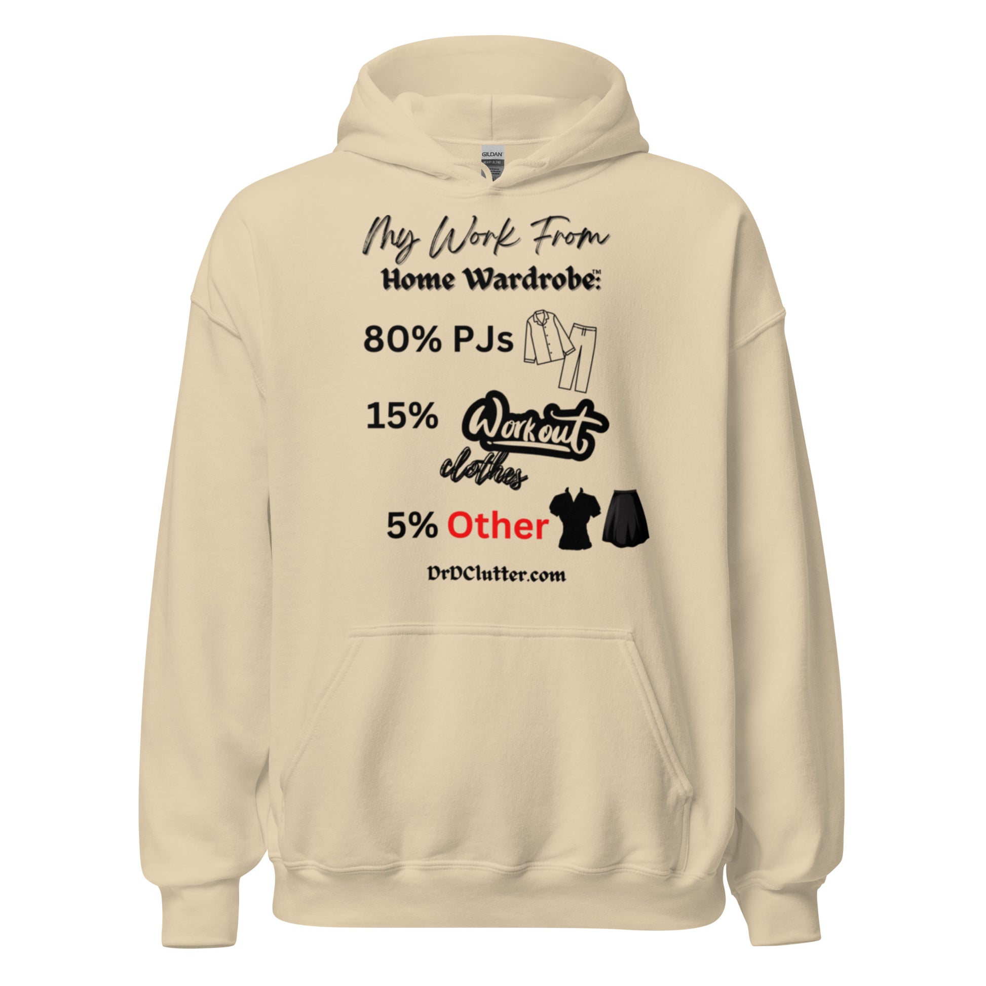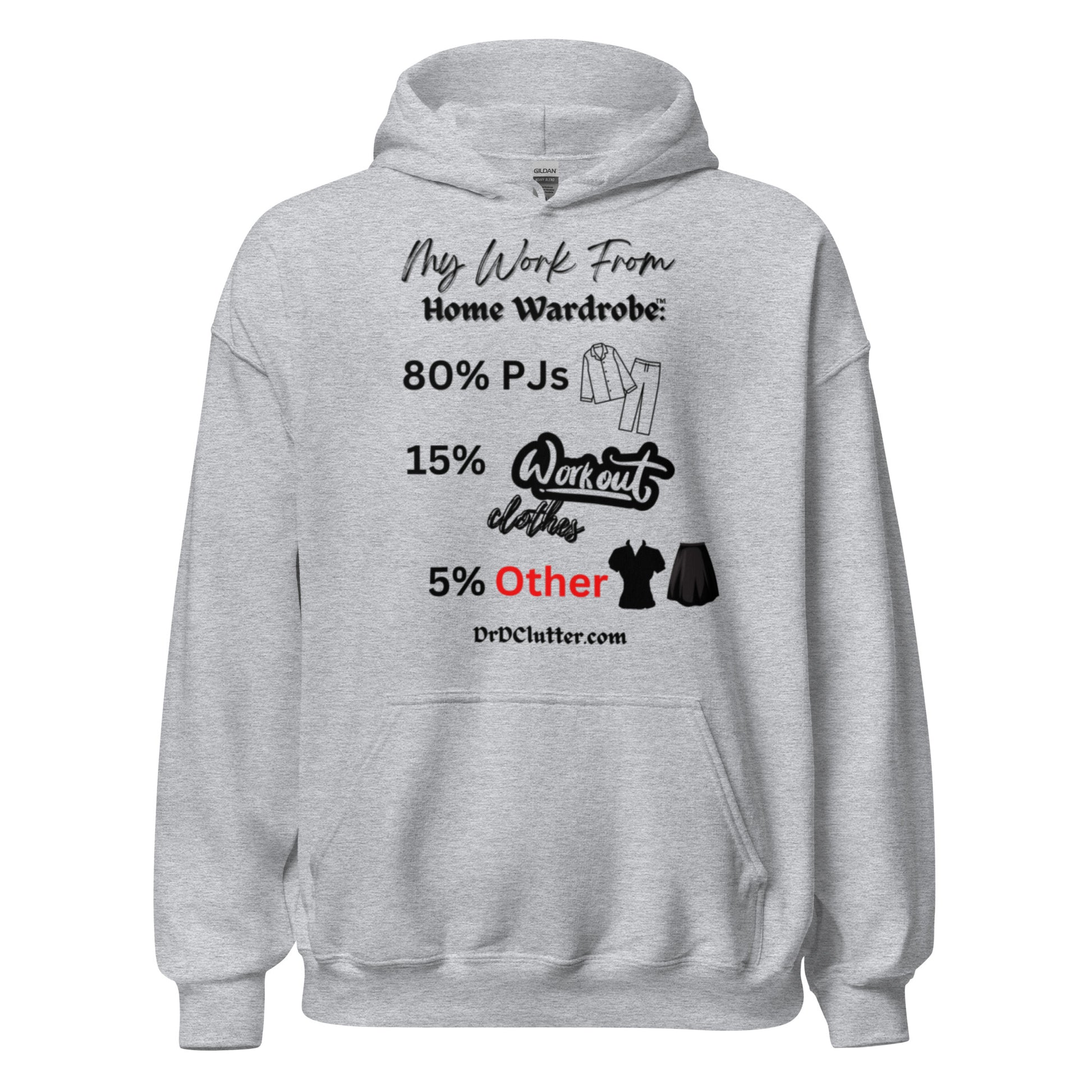 Our Hoodie Sweatshirt featuring the humorous, but true, "My Work From Home Wardrobe™" message, adds a touch of humor and a dose of reality to your workday. It showcases your ability to adapt to the changing world and work environment too.