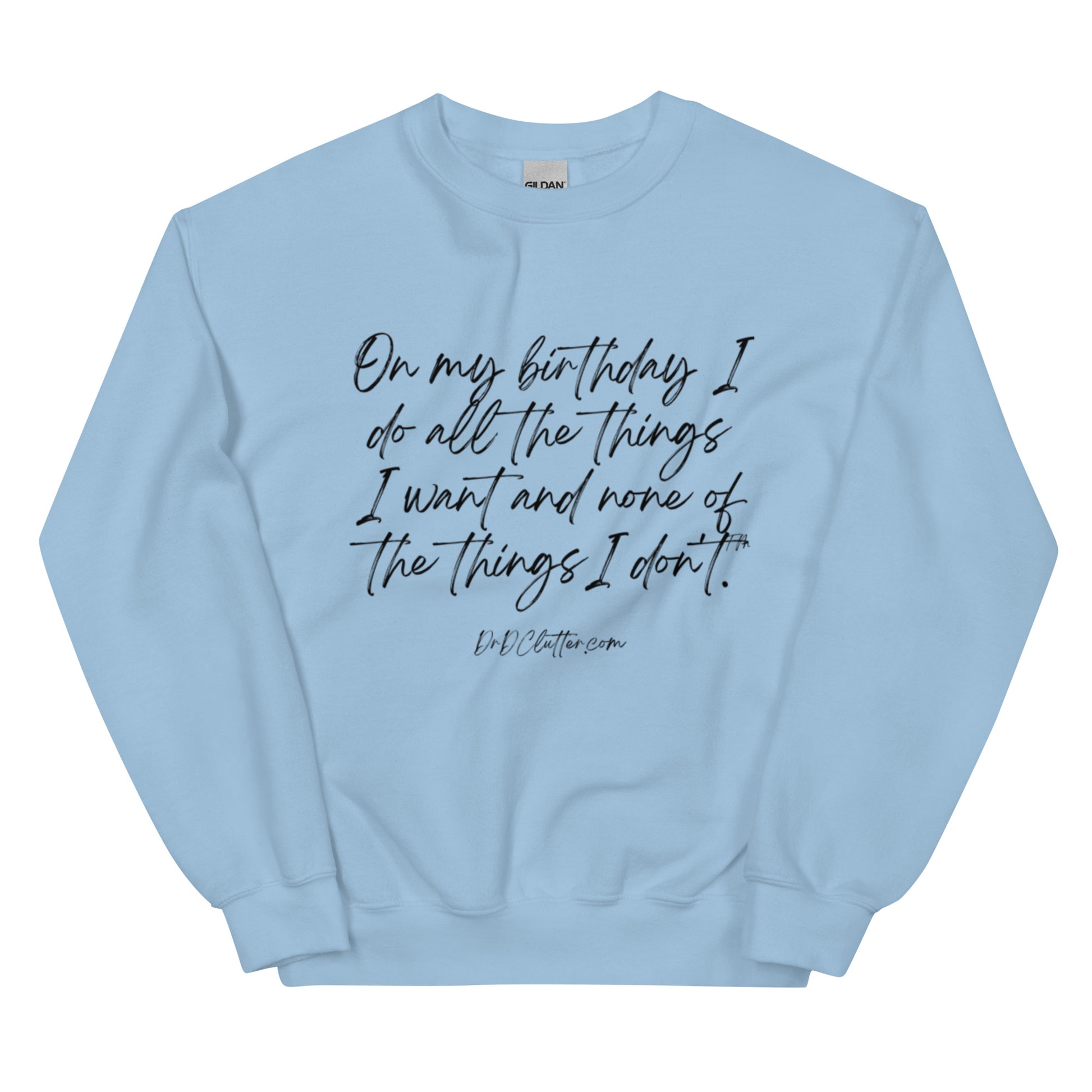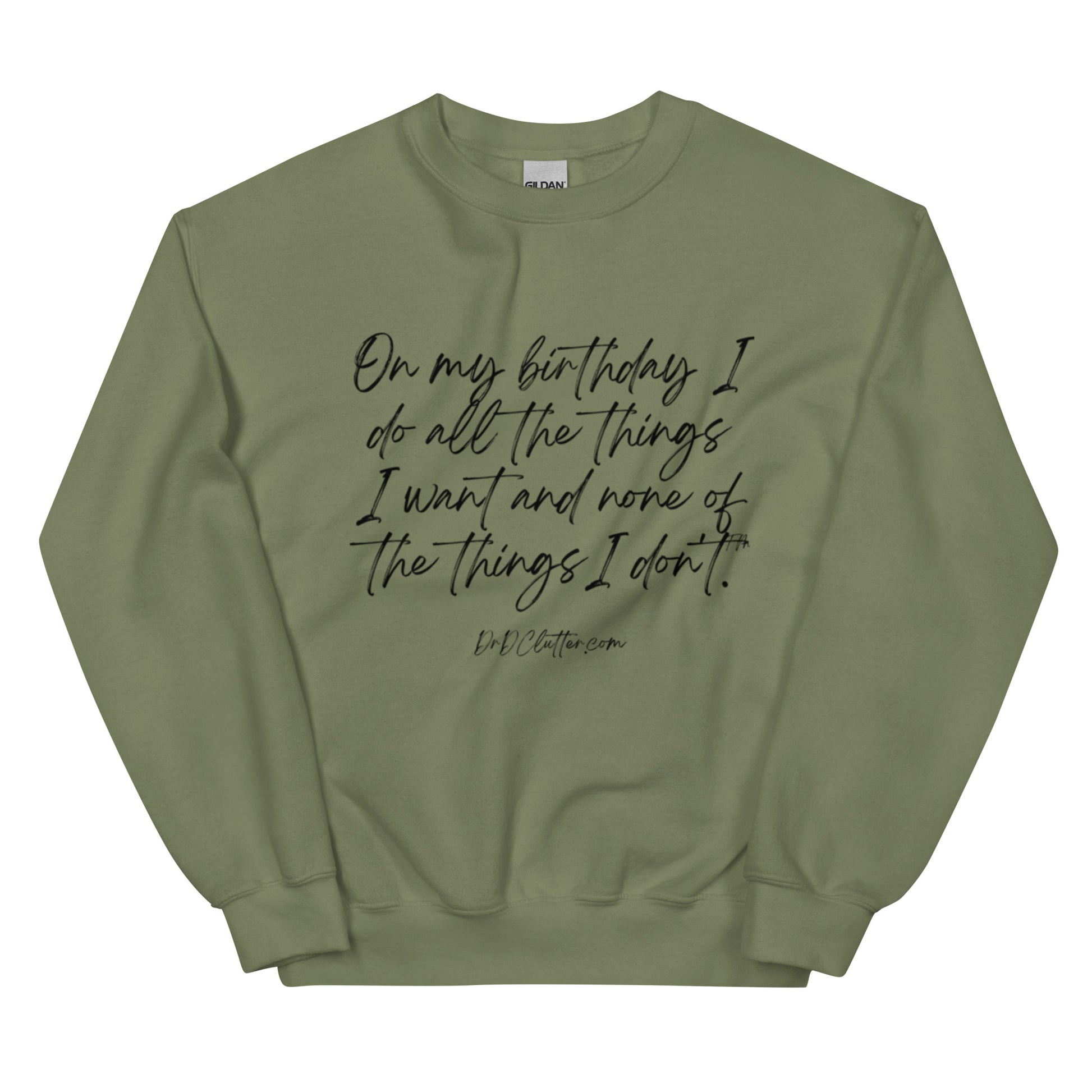 On my birthday I do all the things I want and none of the things I don't™.-Unisex Crewneck Sweatshirt
