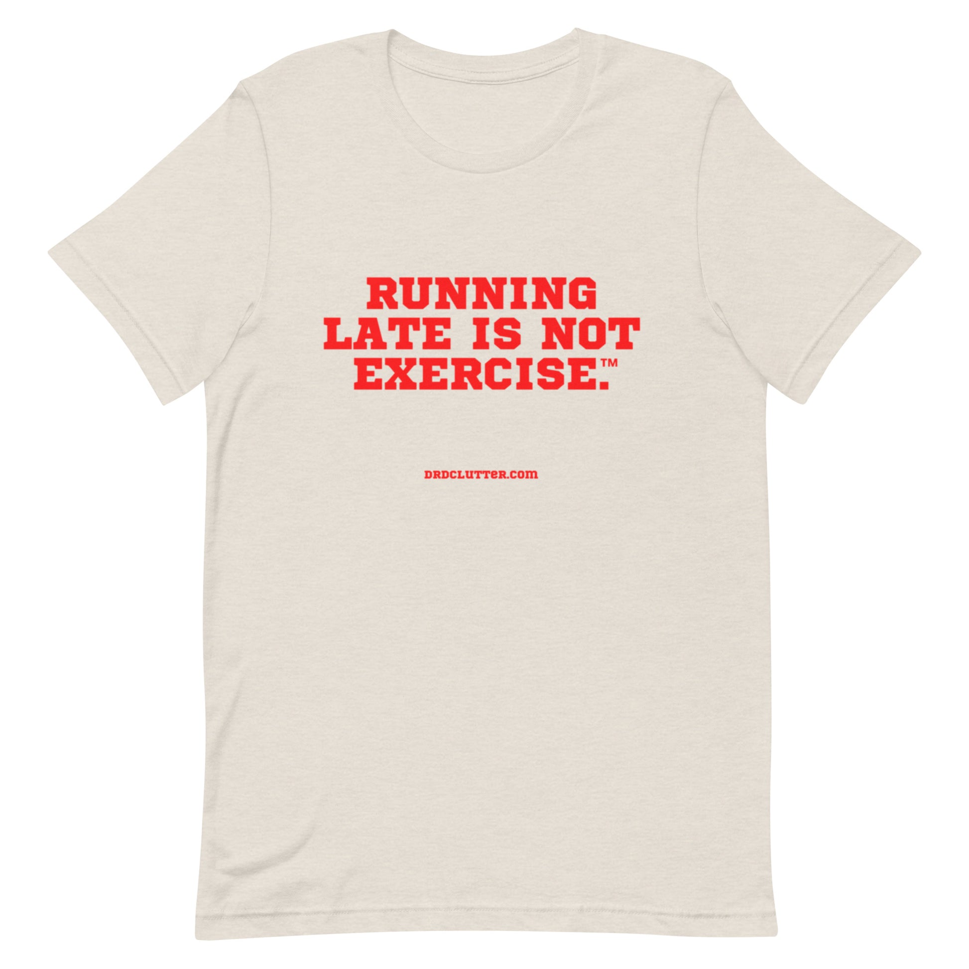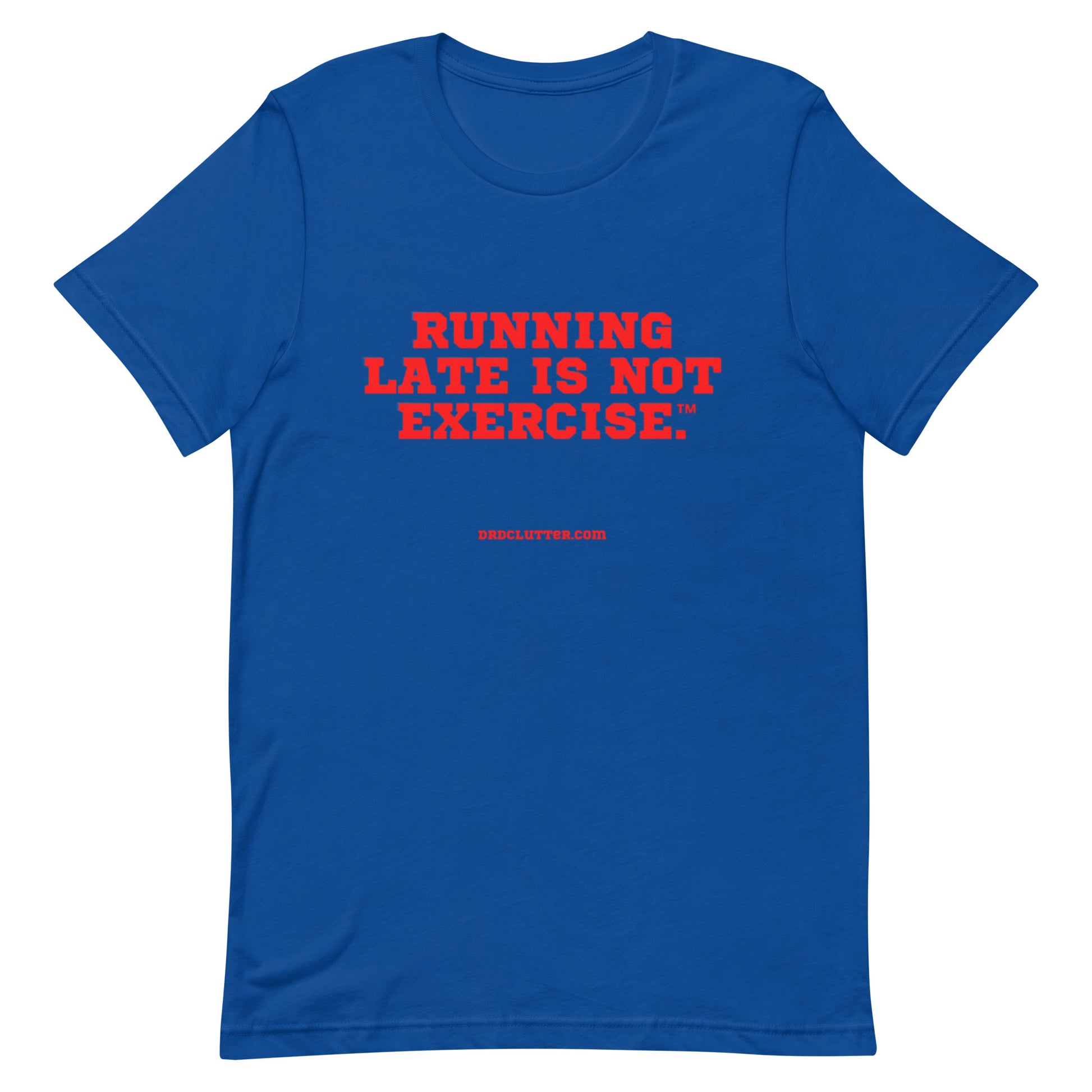 Are you a runner?? No, not as in a marathon or a race, but someone who is always running late, running behind or running to get here or there. Well if this does NOT describe you, then our Premium T-Shirt is for you!! With our humorous message, “Running Late is Not Exercise™.”, you show the world that you value time, appreciate punctuality and save the exercise for your workout, not hurrying through your day.