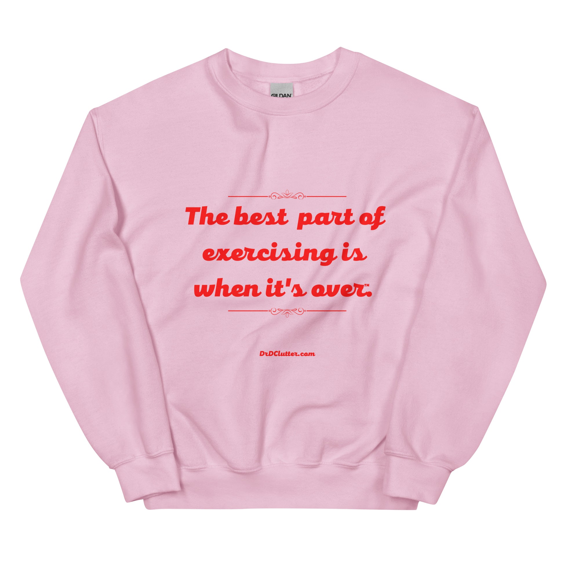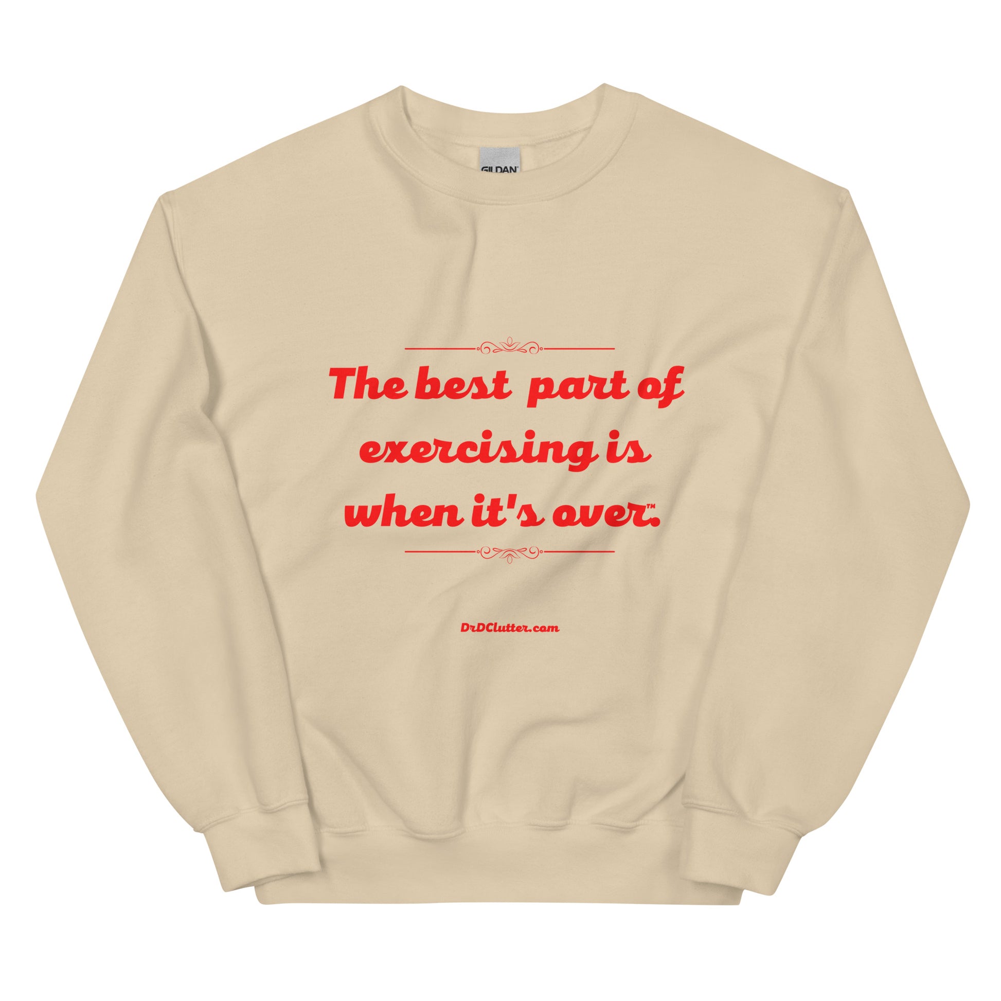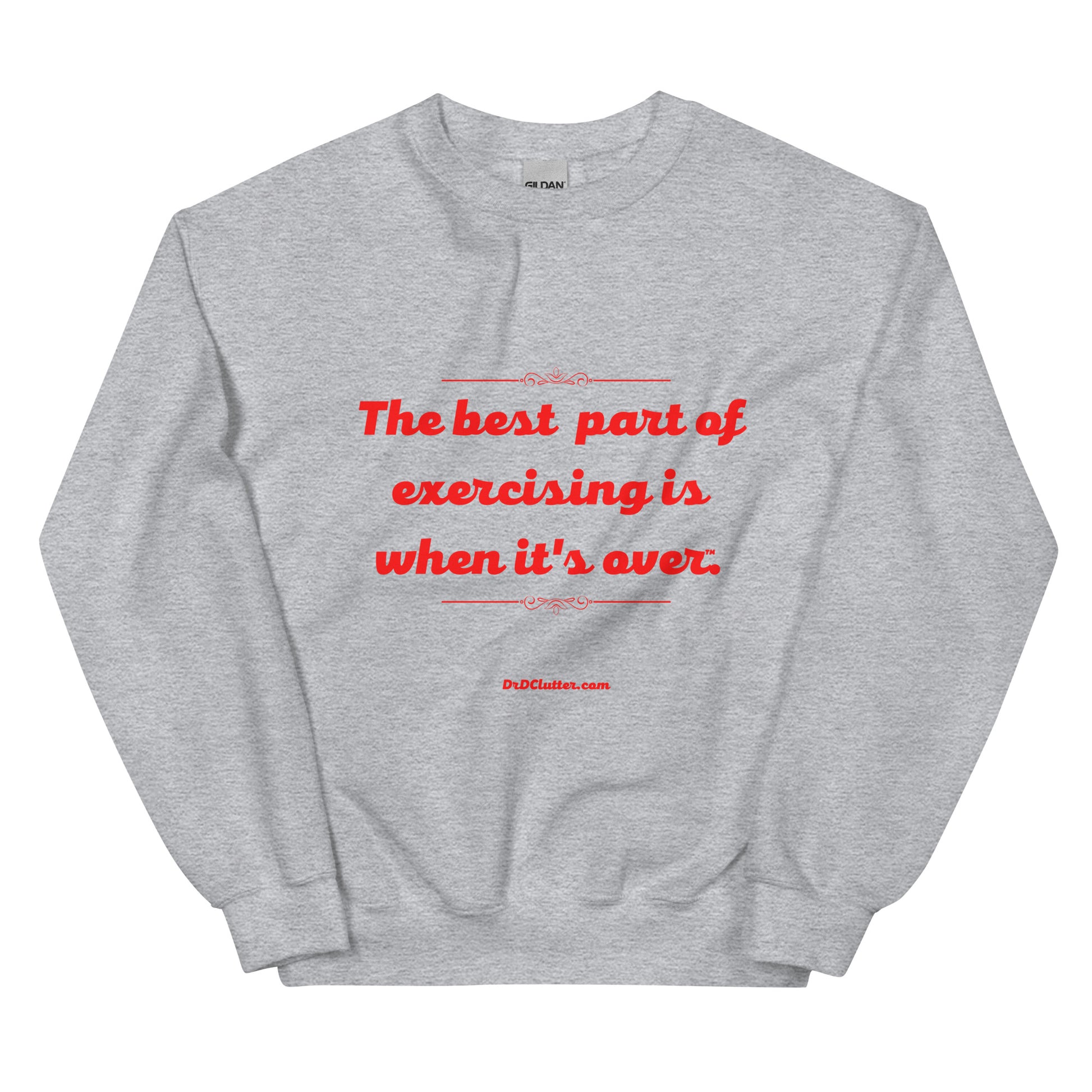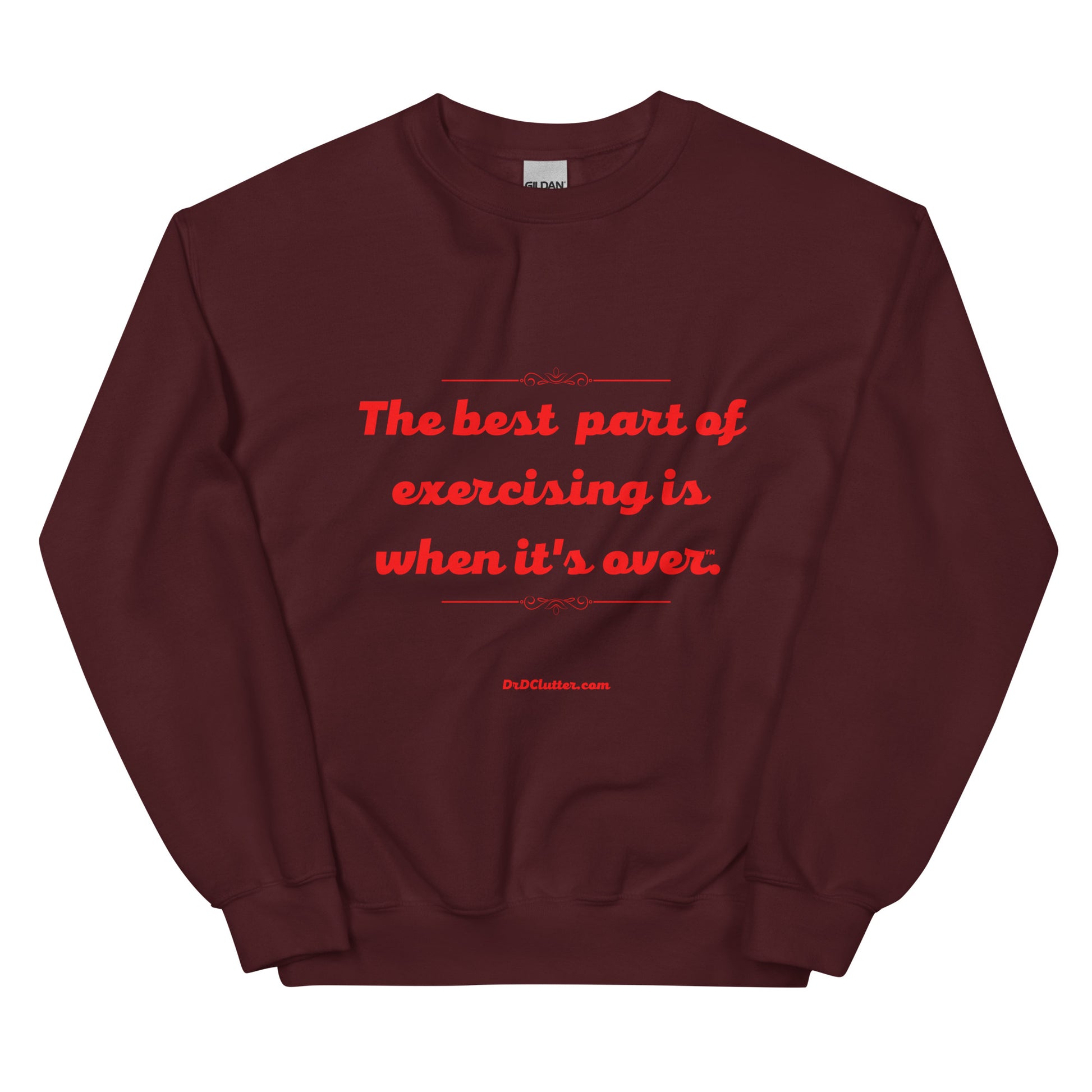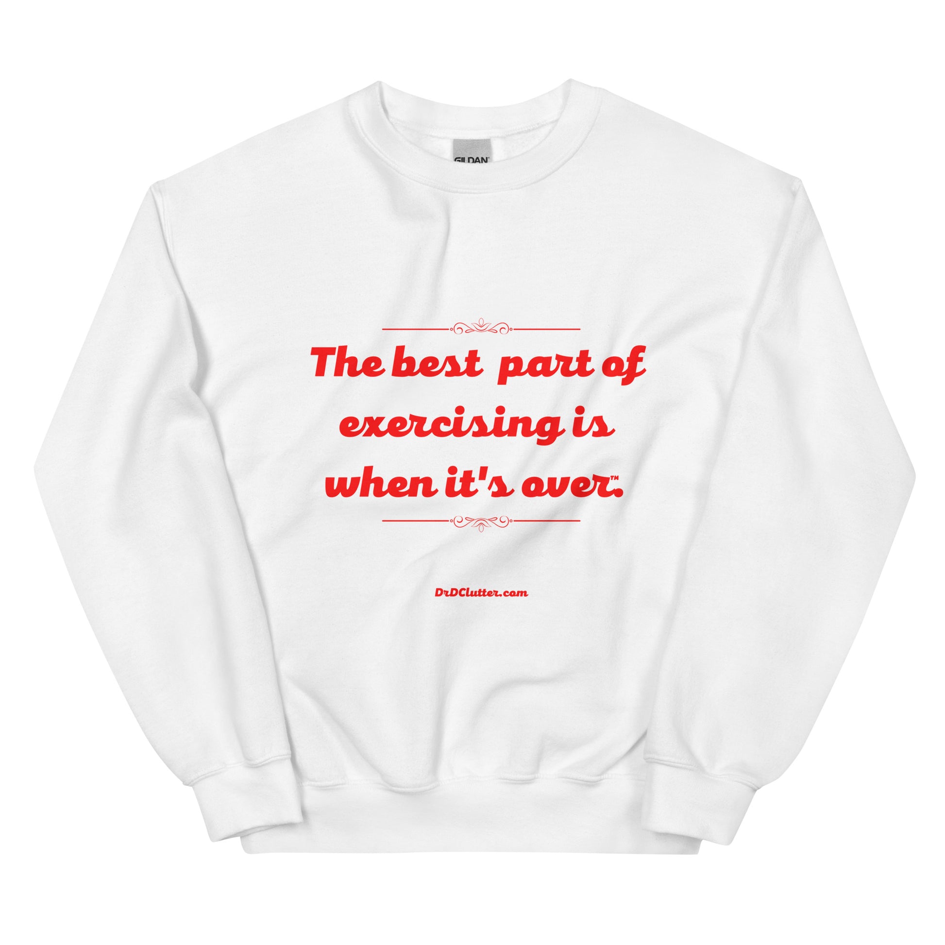 Our Crewneck Sweatshirt features the humorous, but true phrase, "The best part of exercising is when it's over™." It’s for you if you are serious about maintaining your health and fitness, but you celebrate when the workout ends!!