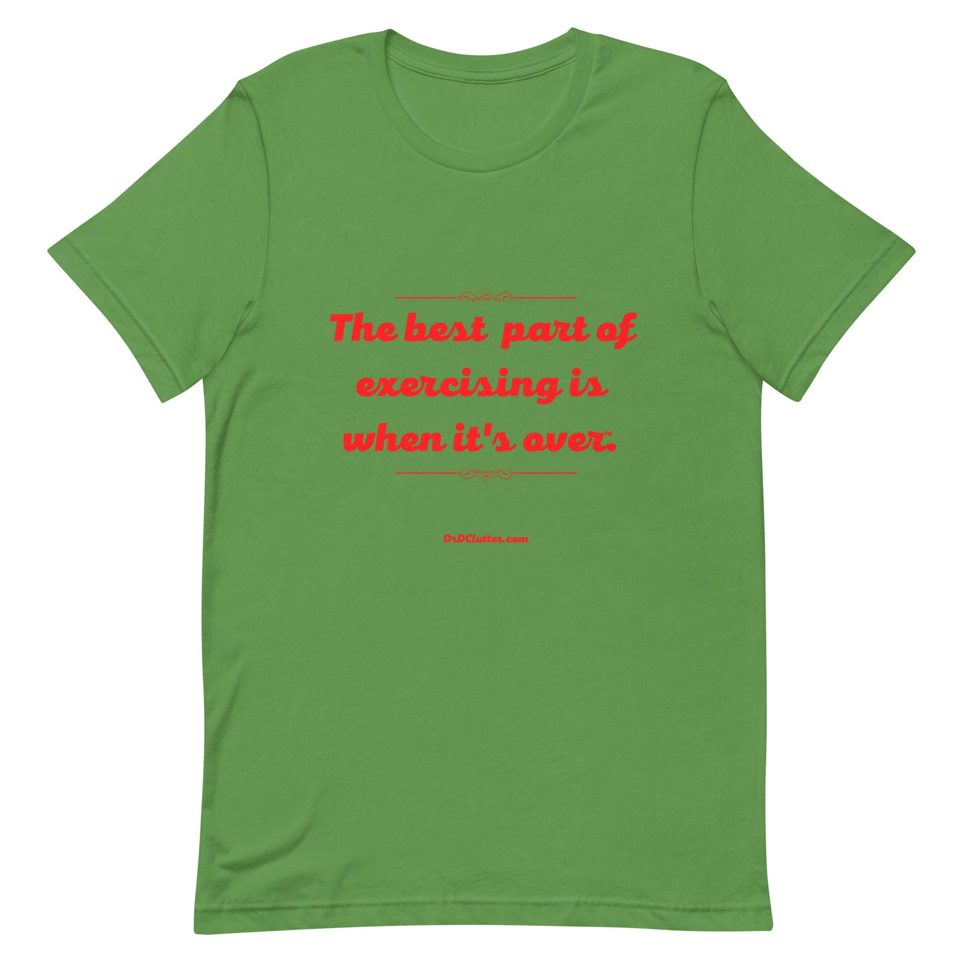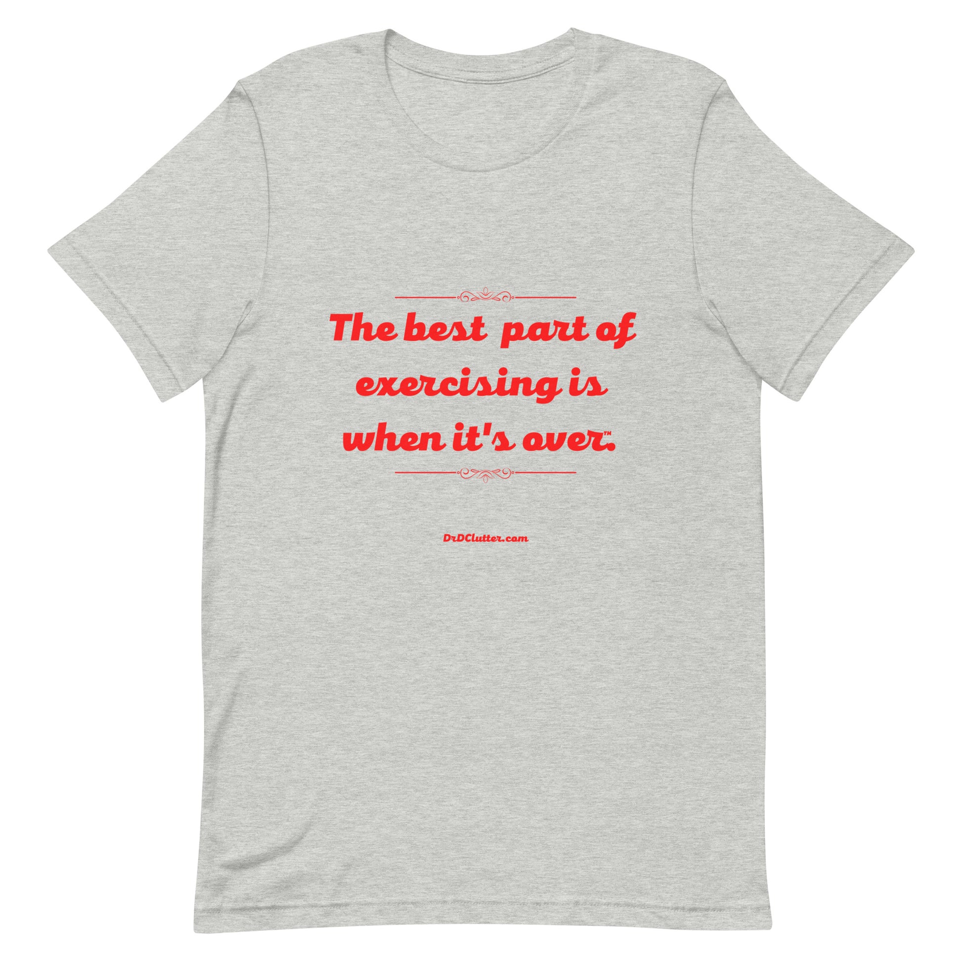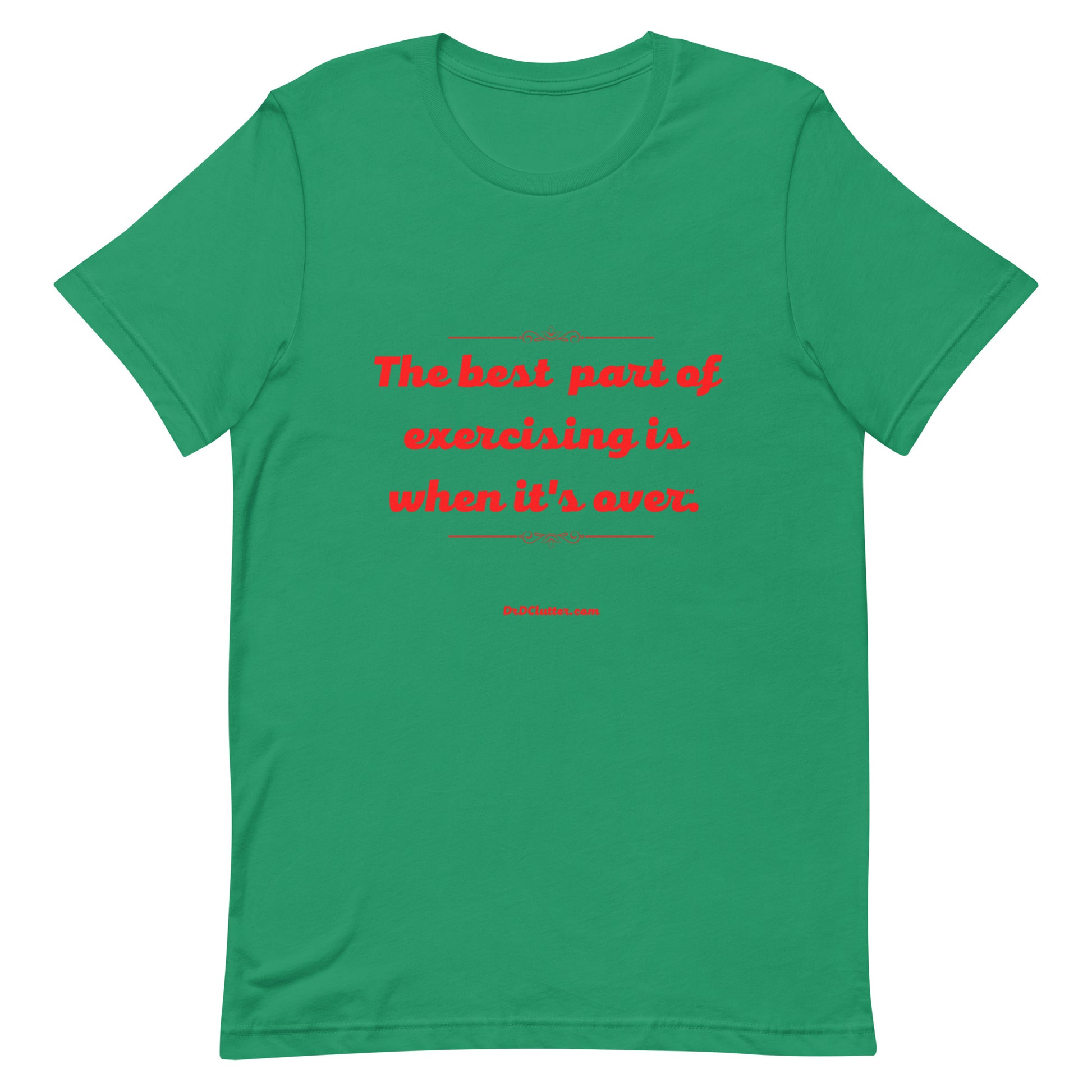 Our Premium T-Shirt features the humorous, but true phrase, "The best part of exercising is when it's over™." It’s for you if you are serious about maintaining your health and fitness, but you celebrate when the workout ends!!