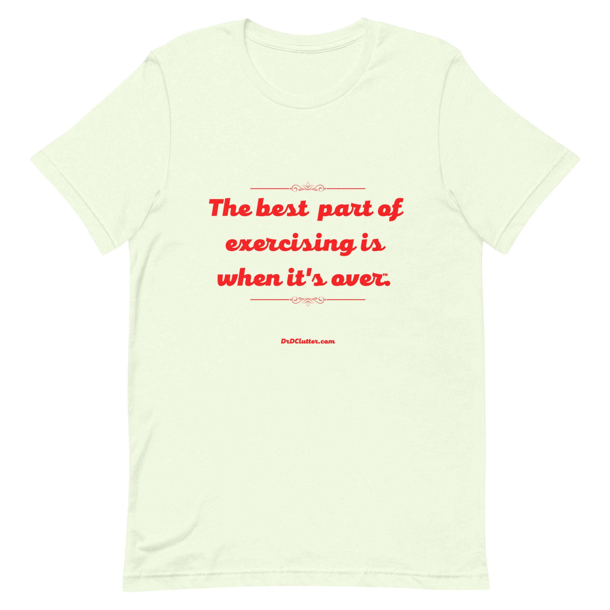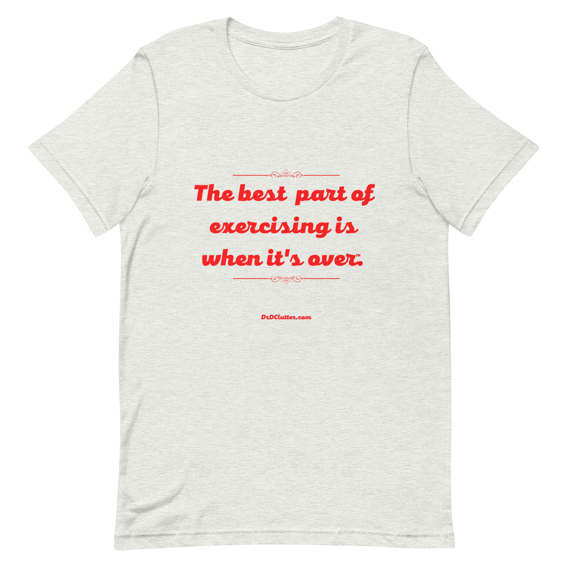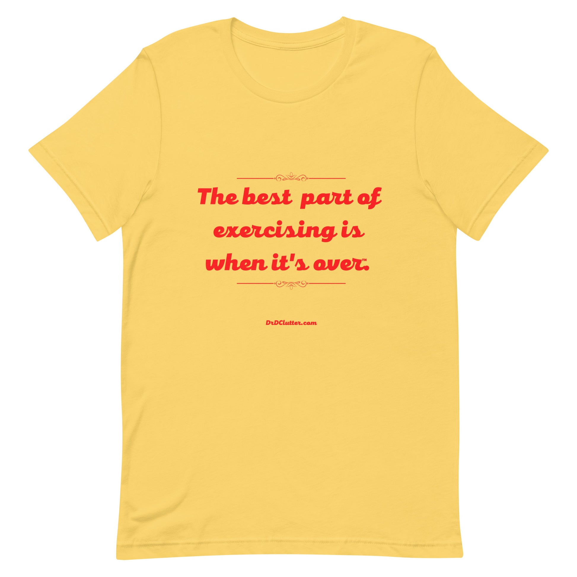 Our Premium T-Shirt features the humorous, but true phrase, "The best part of exercising is when it's over™." It’s for you if you are serious about maintaining your health and fitness, but you celebrate when the workout ends!!