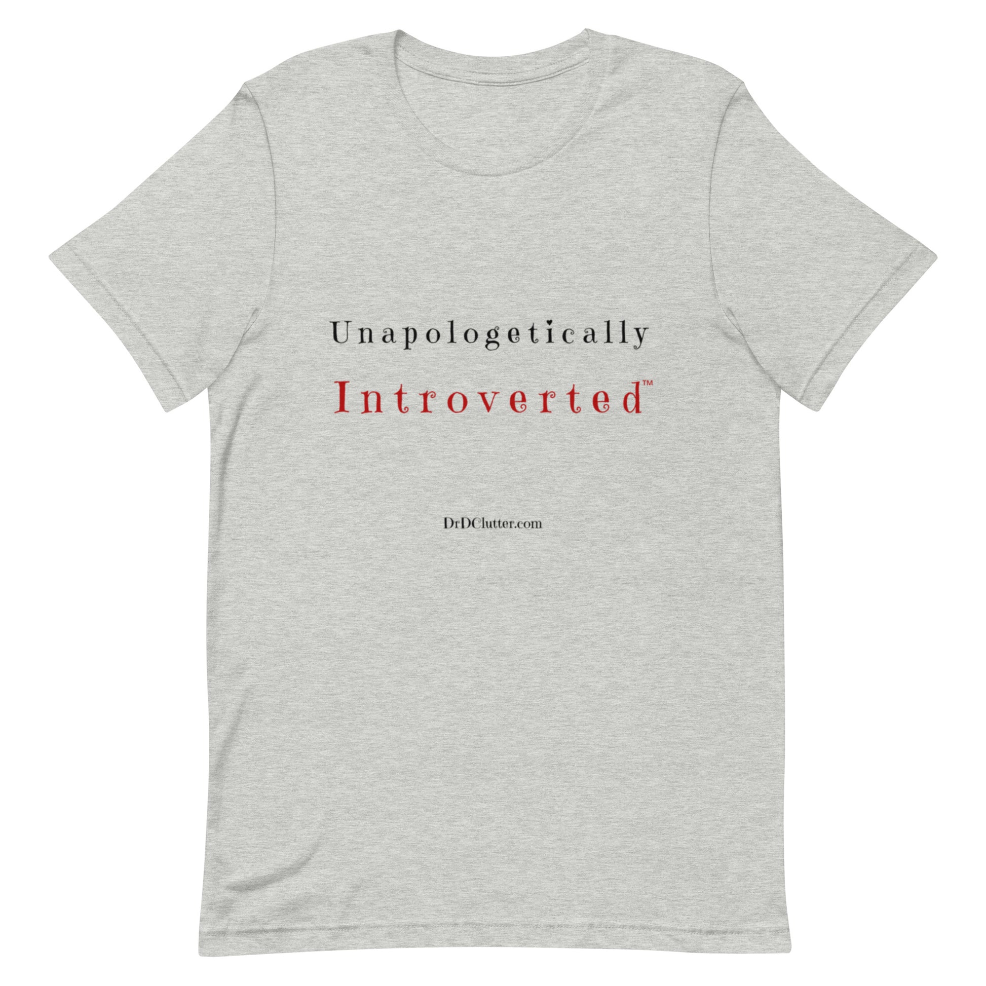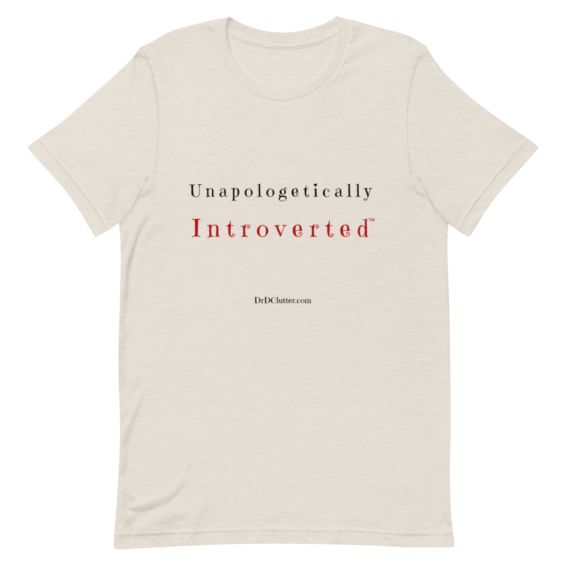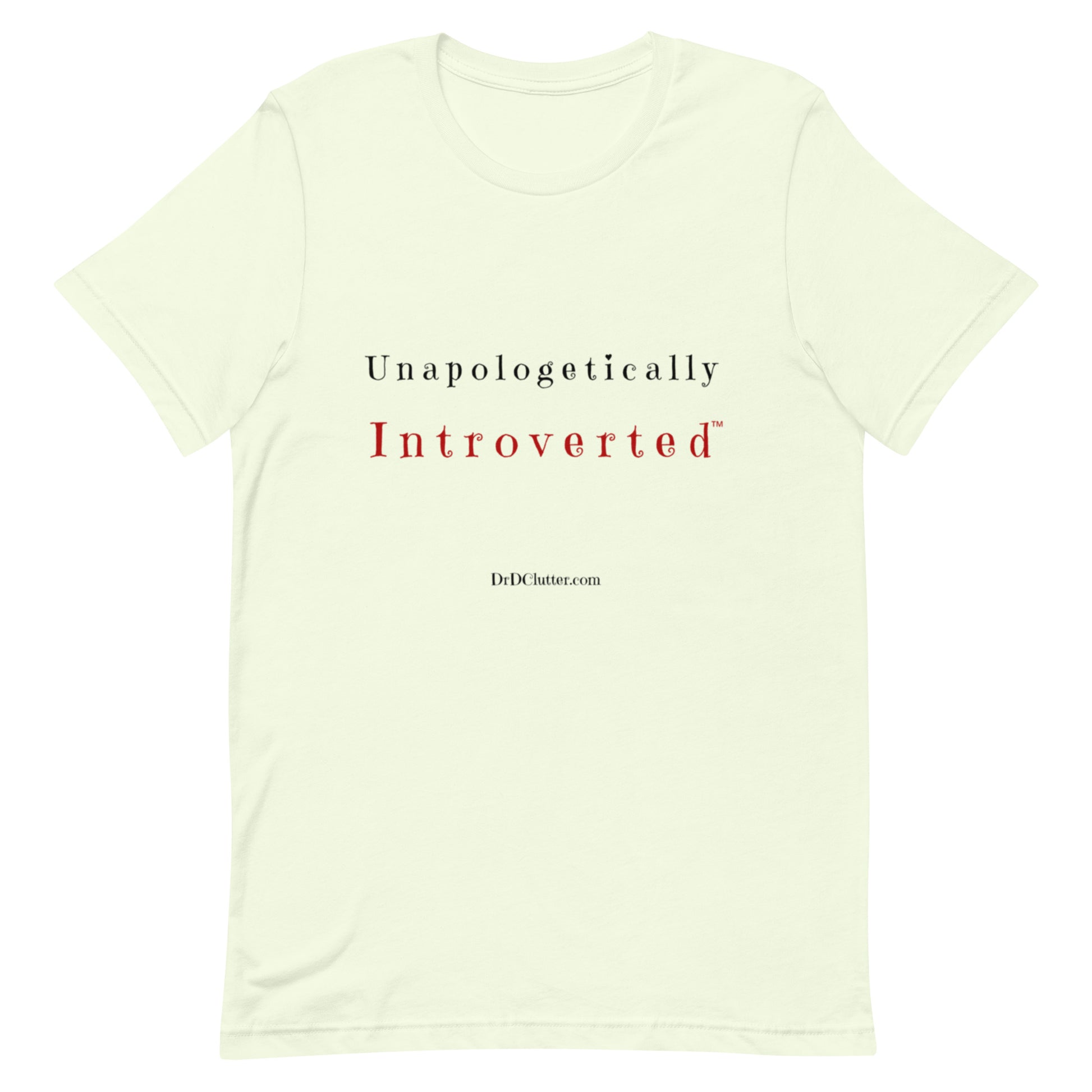 Our Premium T-Shirt features the phrase “Unapologetically Introverted™” which celebrates you as the Introvert you are and for your quiet strength. It further celebrates you for your deep reflection, introspection, and preference for solitude, recognizing that introversion is not a flaw but a unique and valuable trait.